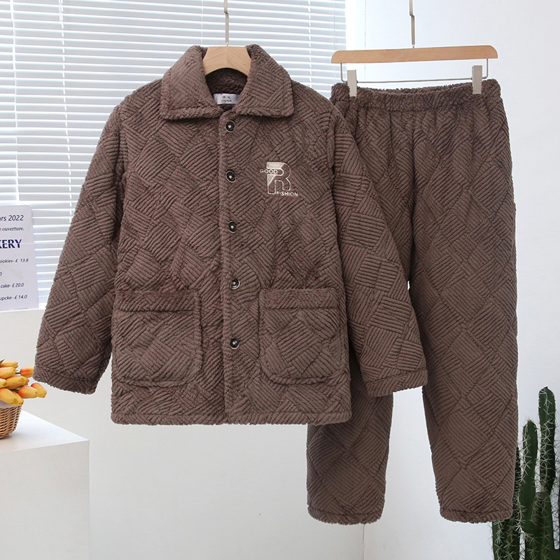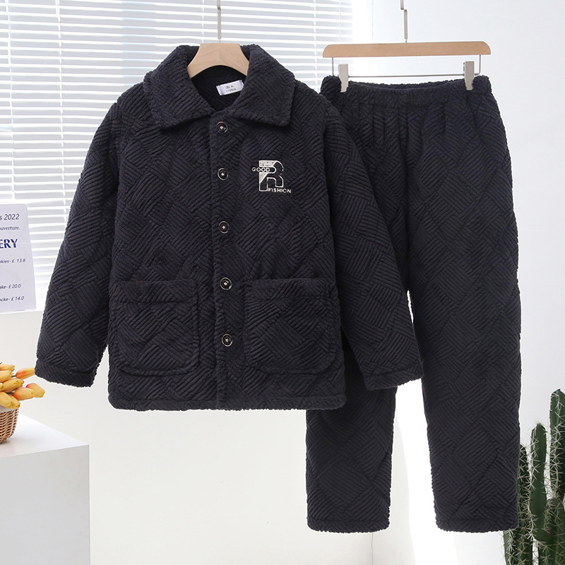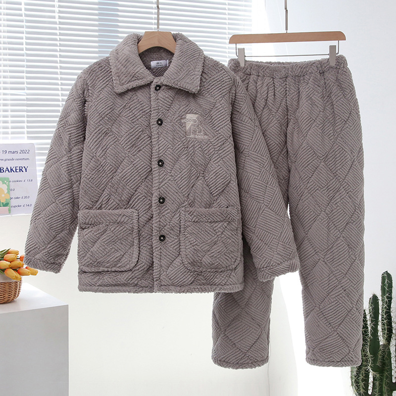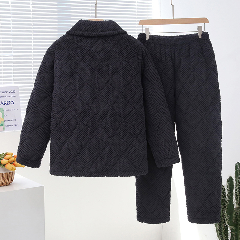 Главная страница > Мужская трехслойная ватная толстая пижама плюс бархат с длинными рукавами осенью и зимой