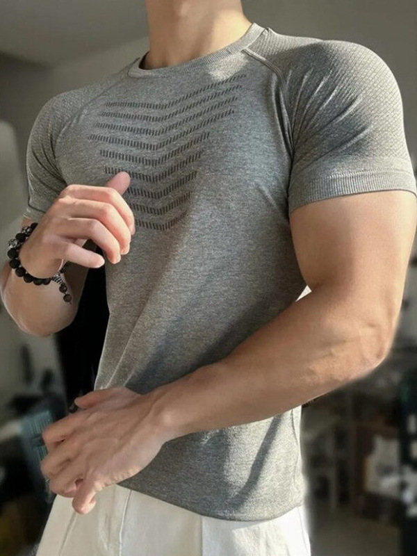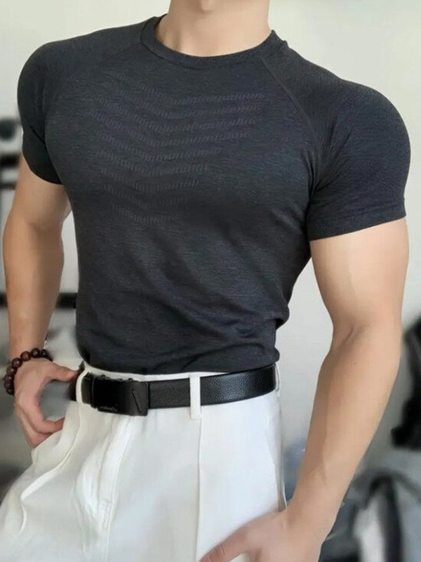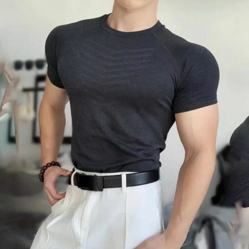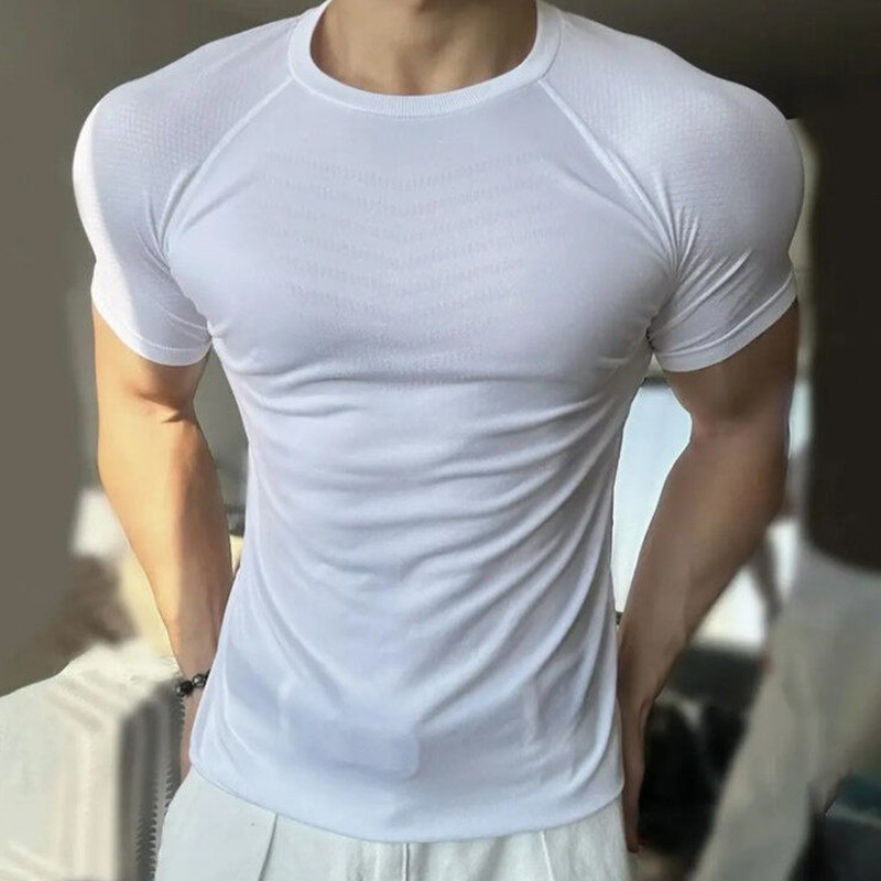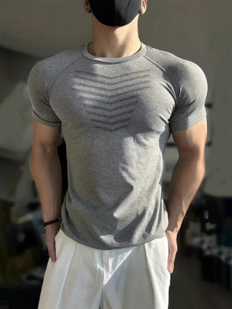 Главная страница > Новая бесшовная жаккардовая спортивная футболка с манжетами и рисунком акулы, быстросохнущая эластичная тонкая футболка с короткими рукавами и круглым вырезом для тренировок и фитнеса для мужчин