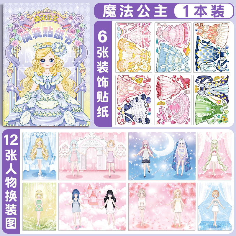 Книга-наклейка для наряда принцессы для девочек 3-6 лет, безопасная и нетоксичная детская книга ручной работы, наклейка, игрушка, повторяющиеся наклейки «сделай сам»