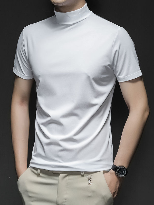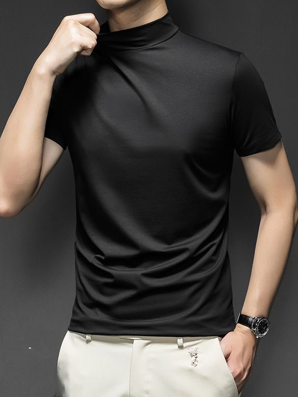 Главная страница > Оптовая торговля Внешняя торговля мужские маленькие воротники с короткими рукавами молодежная футболка среднего воротника сплошной цвет полувысокого воротника повседневная рубашка с половиной рукава