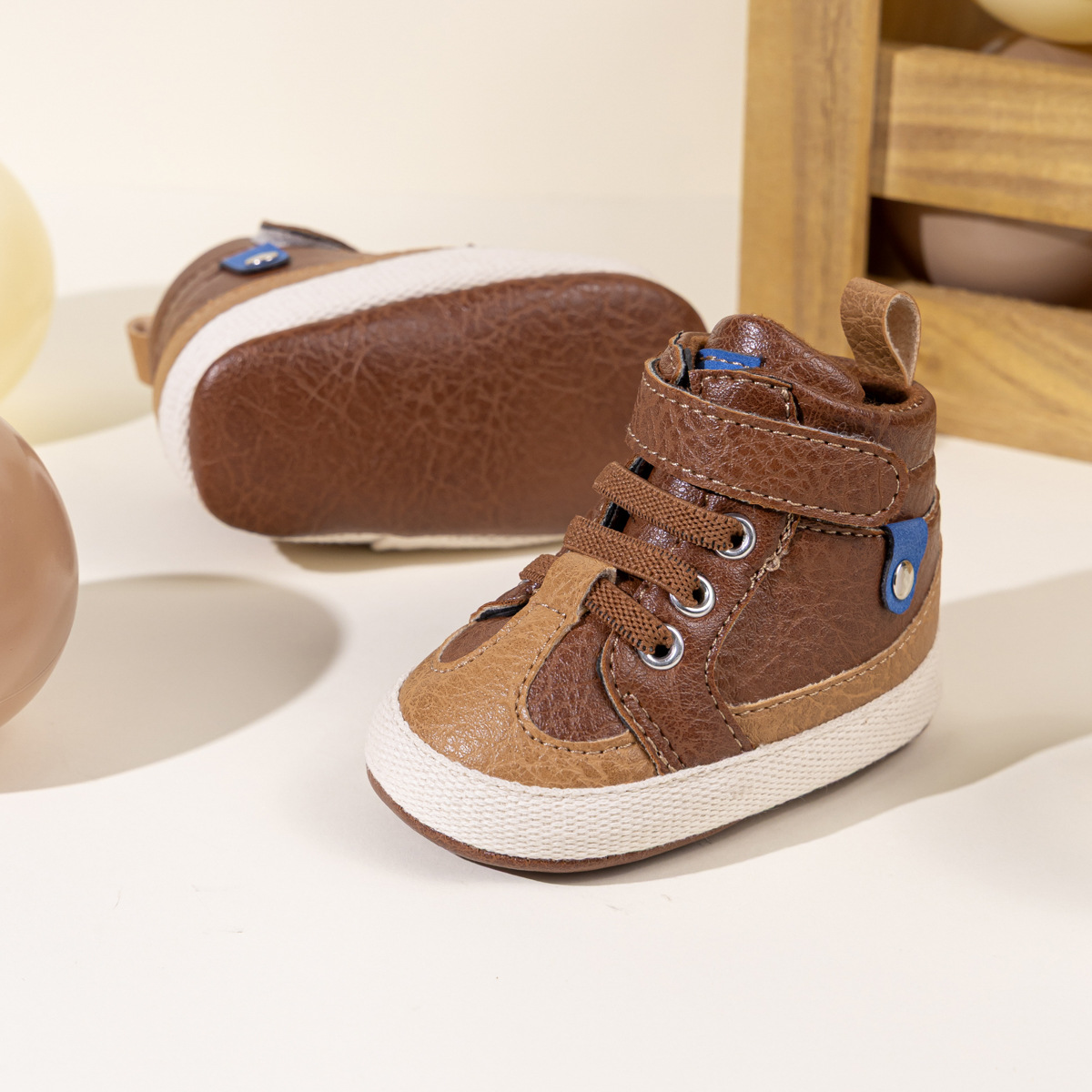 Главная страница > 25 новых повседневных туфель для маленьких мальчиков, обувь из искусственной кожи на мягкой подошве для малышей, детская обувь с высоким берцем на липучке контрастного цвета, детская обувь