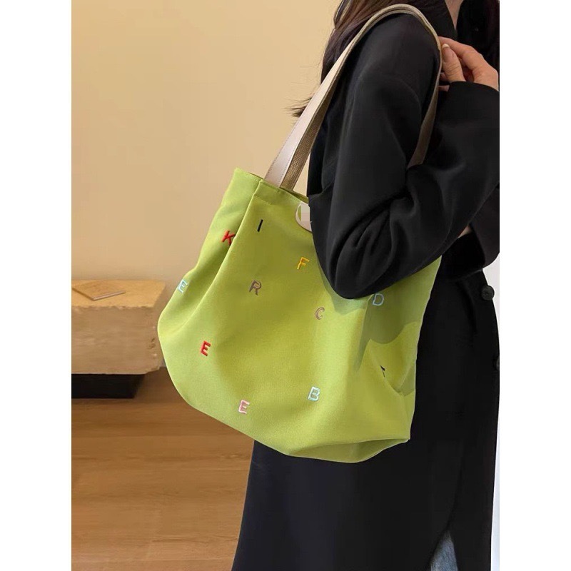 Главная страница > Вместительная сумка-тоут с вышивкой, стильная студенческая холщовая сумка, корейская нишевая сумка через плечо