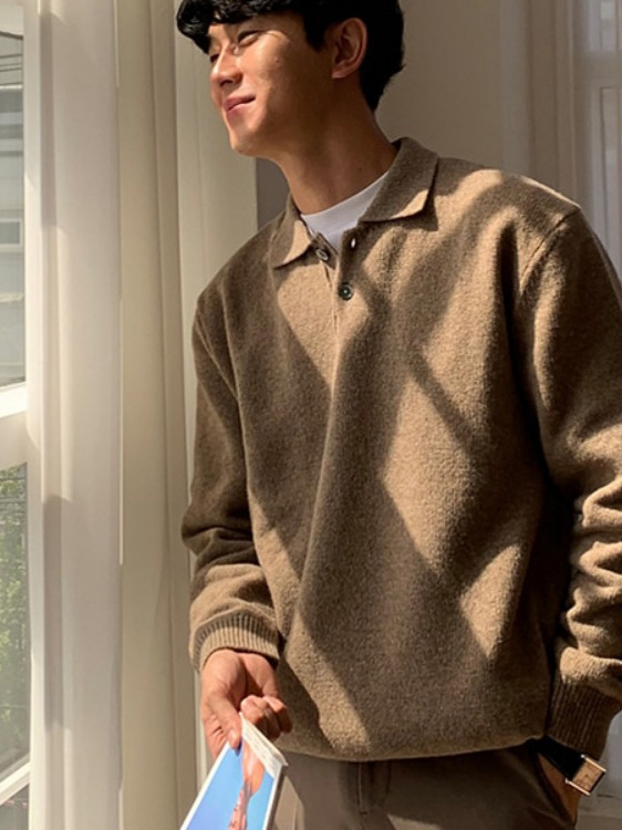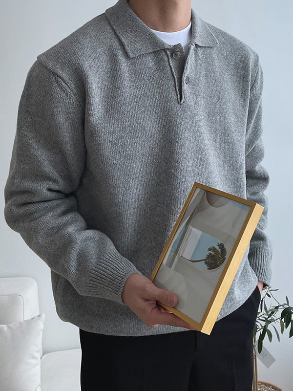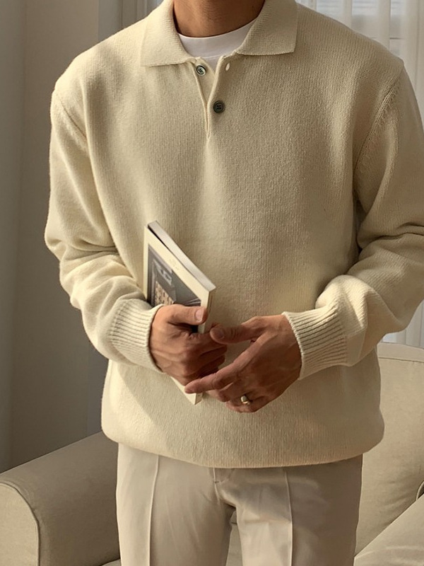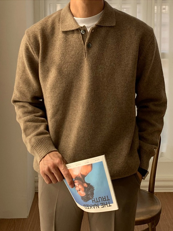 Главная страница > Рубашка-поло с лацканами, свитер, мужской свободный корейский стиль, модный красивый универсальный однотонный трикотаж, верхняя куртка