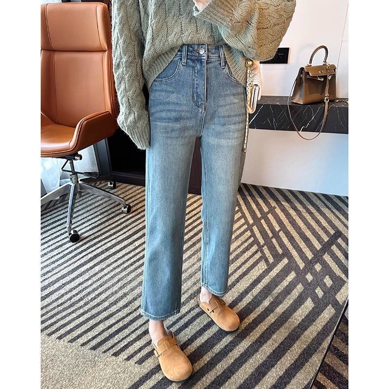 Главная страница > Светлые эластичные прямые джинсы для женщин, весна/лето 2025, новые тонкие облегающие брюки-сигареты с высокой талией для миниатюрных фигур