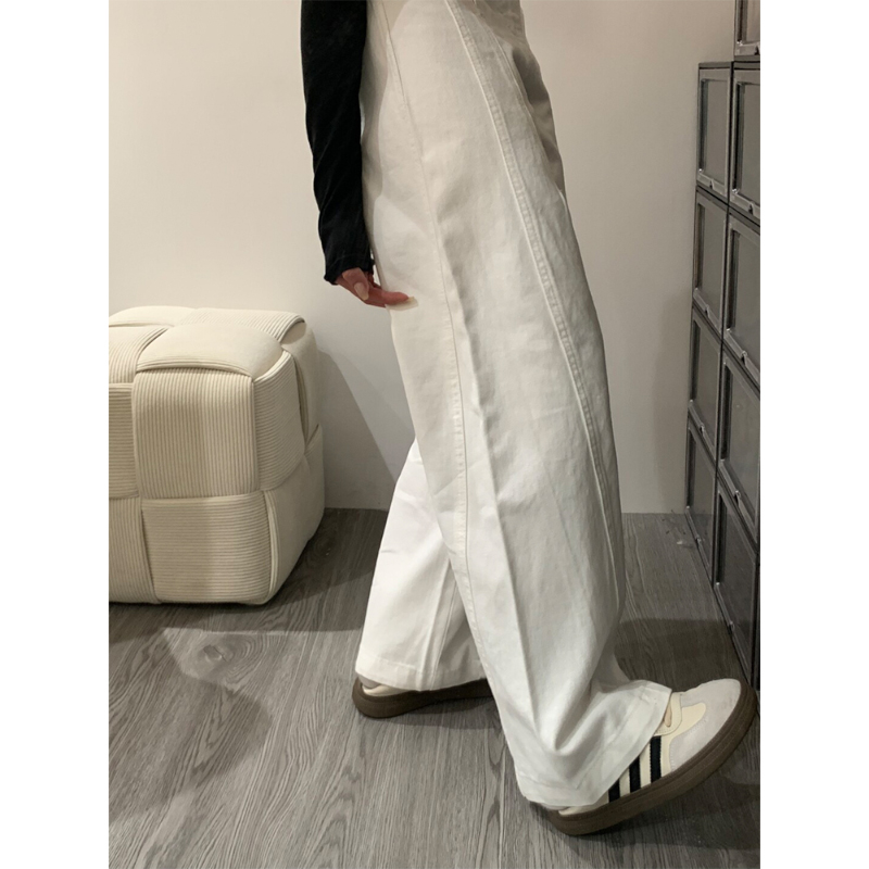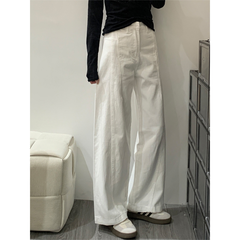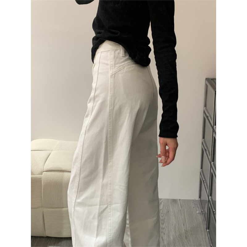 Главная страница > Белые джинсы ятаган женский 2025 новый весенний с высокой талией тонкий свободный платан широкие ножки банановый серп брюки