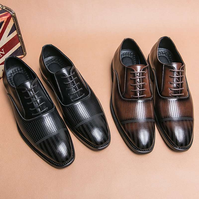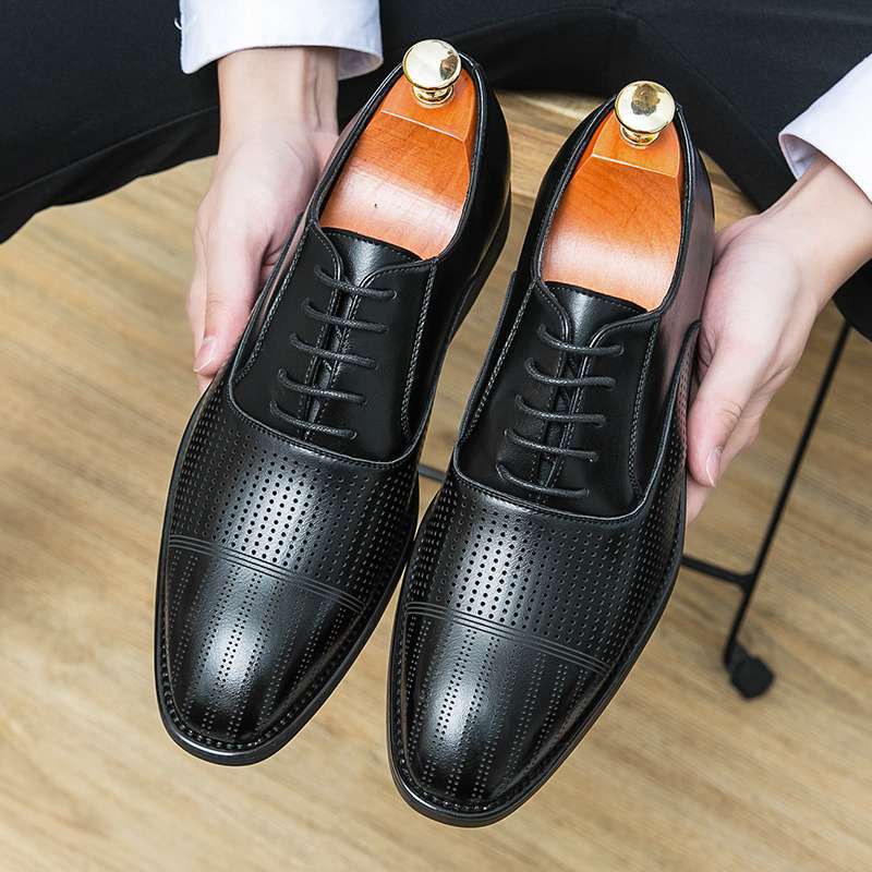 Главная страница > Красивые кожаные туфли, мужские летние кожаные сандалии, деловые туфли дерби с тремя шарнирами, мужские высококачественные дышащие полые оксфорды с защитой от запаха