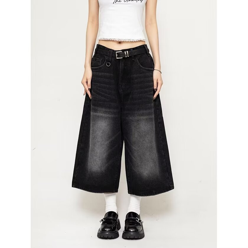 Летние свободные миниатюрные винтажные укороченные джинсовые брюки в стиле ретро в американском стиле, широкие укороченные брюки для женщин, летние кроссовки