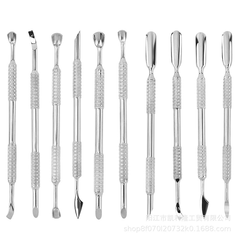 Nail Art Русская сталь Push Nail Art Специальный толкатель с двумя головками Подкова с двумя головками Отшелушивающий Наклонный Маникюр Стальной толкатель