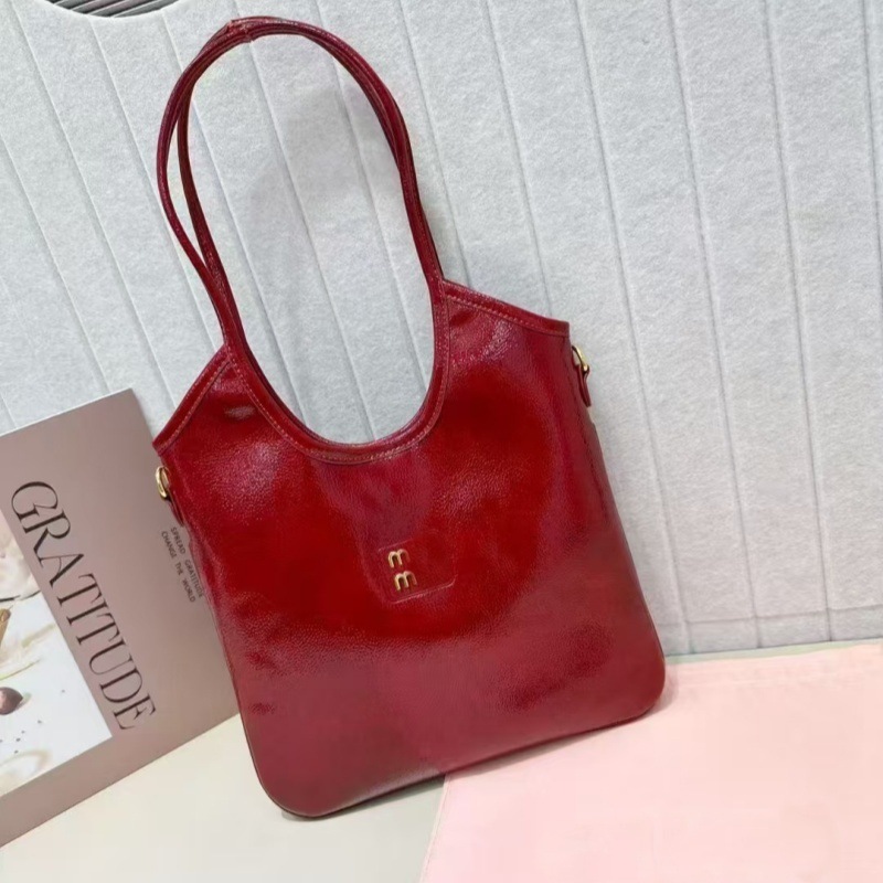 Главная страница > 2025 новая сумка-тоут из лакированной вощеной кожи Miu, модная универсальная сумка через плечо для женщин, для повседневного использования