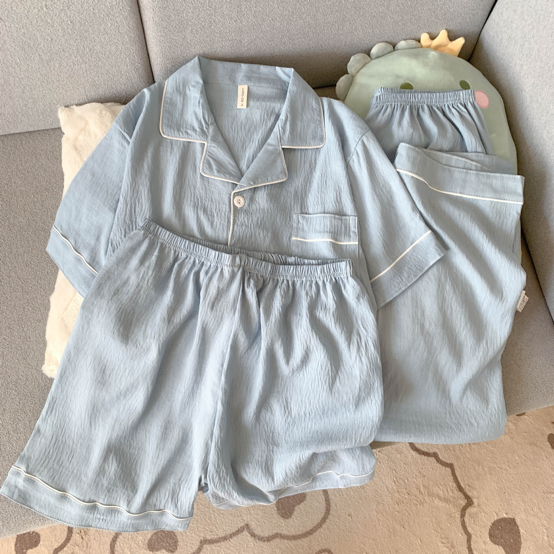 Главная страница > 2025 новая мужская пижама с короткими рукавами летом тонкий облачный хлопок сплошной цвет простой роскошный набор из трех частей