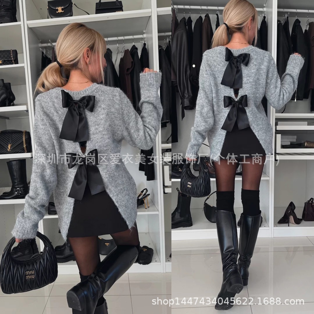 Главная страница > Новый женский свитер-пуловер на День святого Валентина 2025 года в европейском и американском стиле, сексуальный вязаный топ с открытой спиной и бантом, в различных цветах