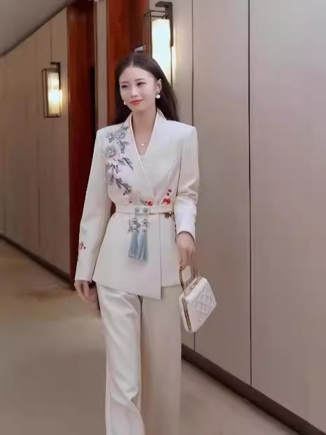 Главная страница > Мощный женский костюм из двух частей, новый нишевый дизайн весны и осени, национальный стиль, способный и элегантный профессиональный костюм.