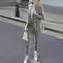 Лао Сюй серый полосатый костюм с рукавами три четверти