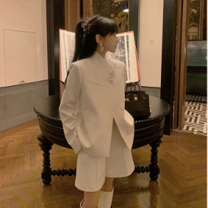 Белый костюм-пиджак и шорты с бесплатной брошью
