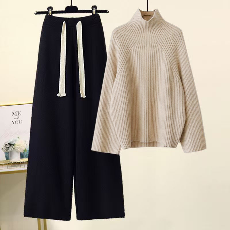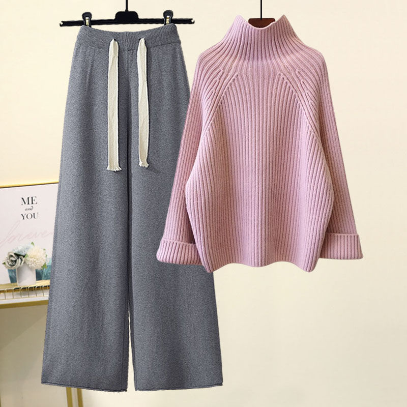 Большой размер женский осенний набор 2024 новый минус возрастной трикотажный свитер с высоким воротником