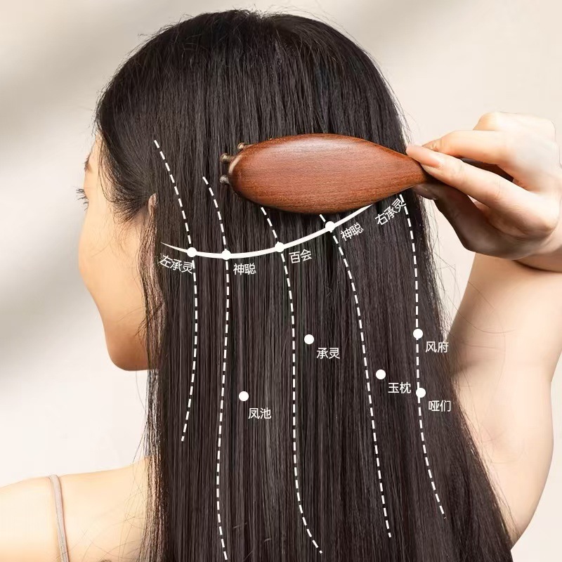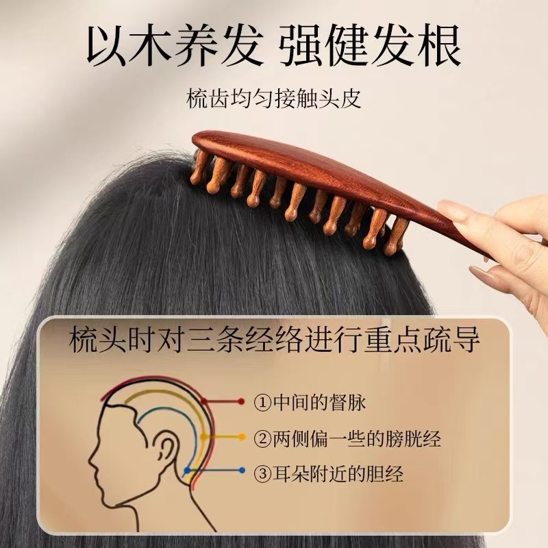 Массажная расческа для кожи головы с 22 шипами, натуральный инструмент для проработки меридианов и скребковый массажер из сандалового дерева для мужчин и женщин, волшебный инструмент для ухода за волосами и кожей головы.