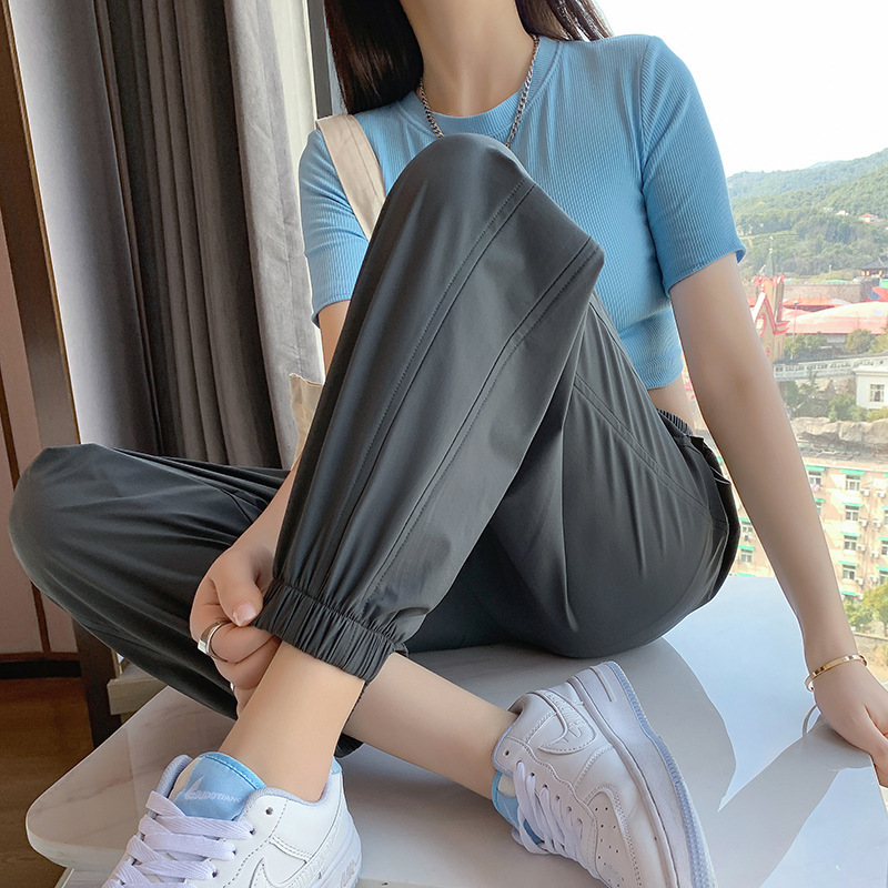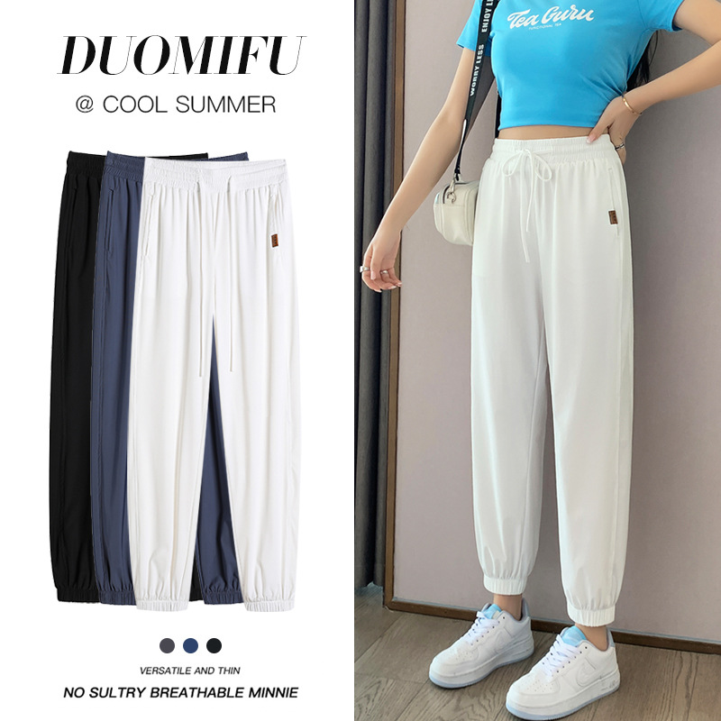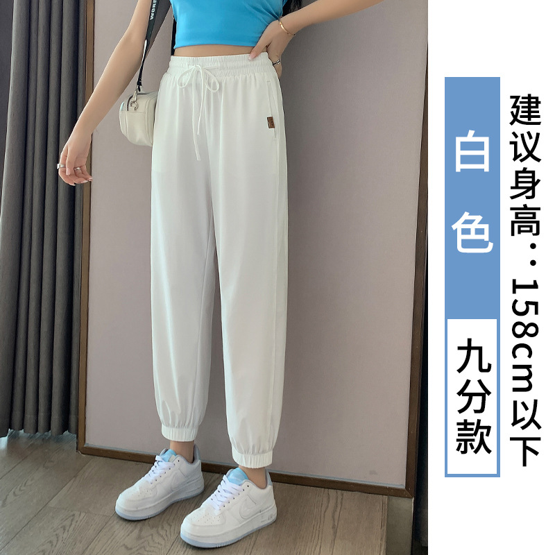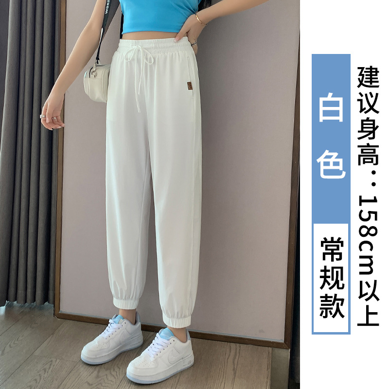 Главная страница > Белые быстросохнущие женские свободные брюки из ледяного шелка, новинка лета 2024, дышащие повседневные тонкие штаны-шаровары с защитой от комаров
