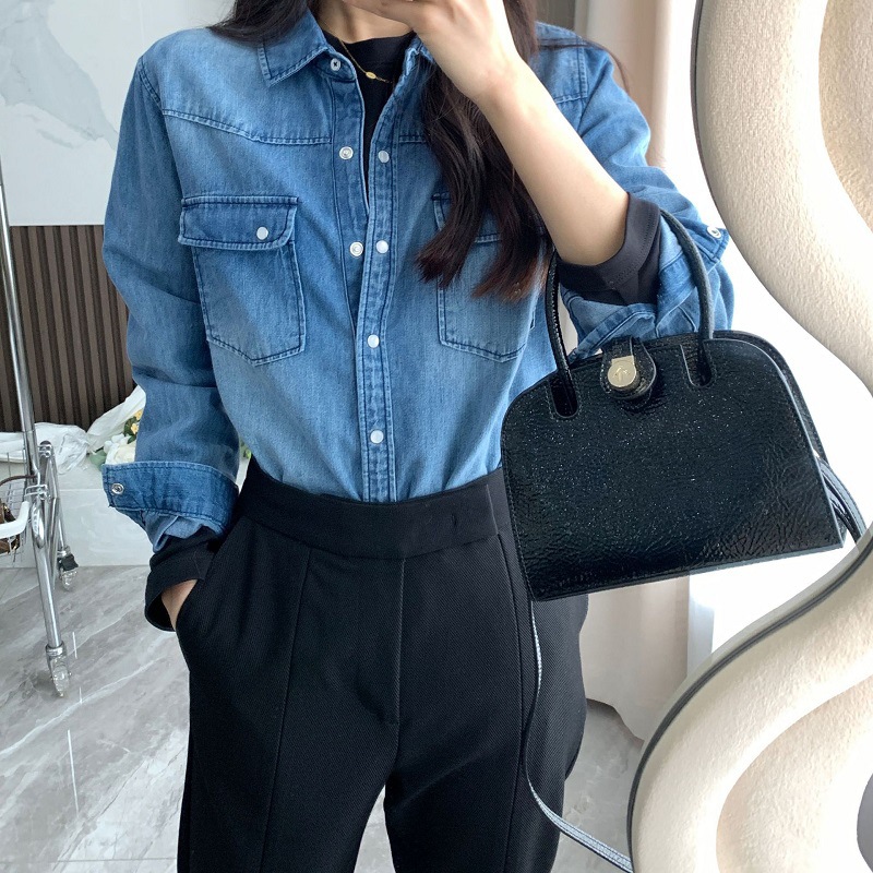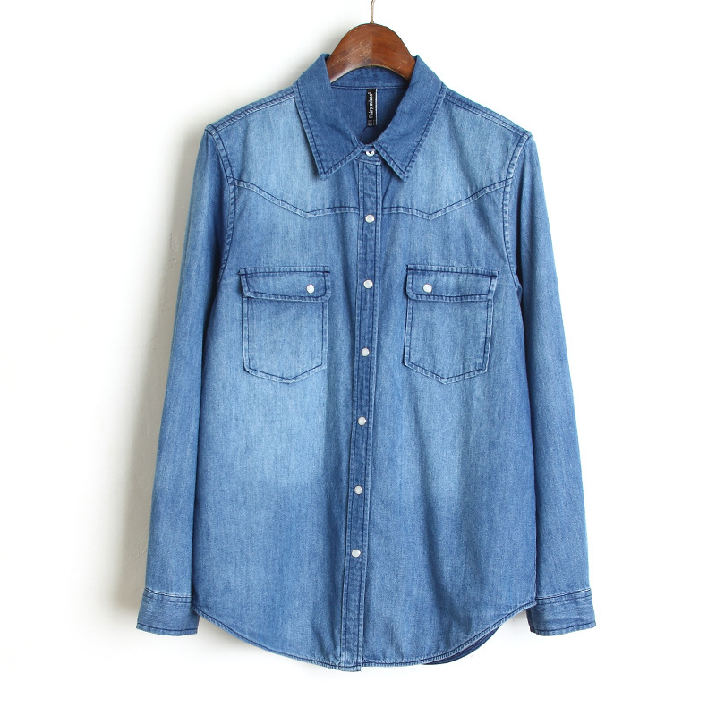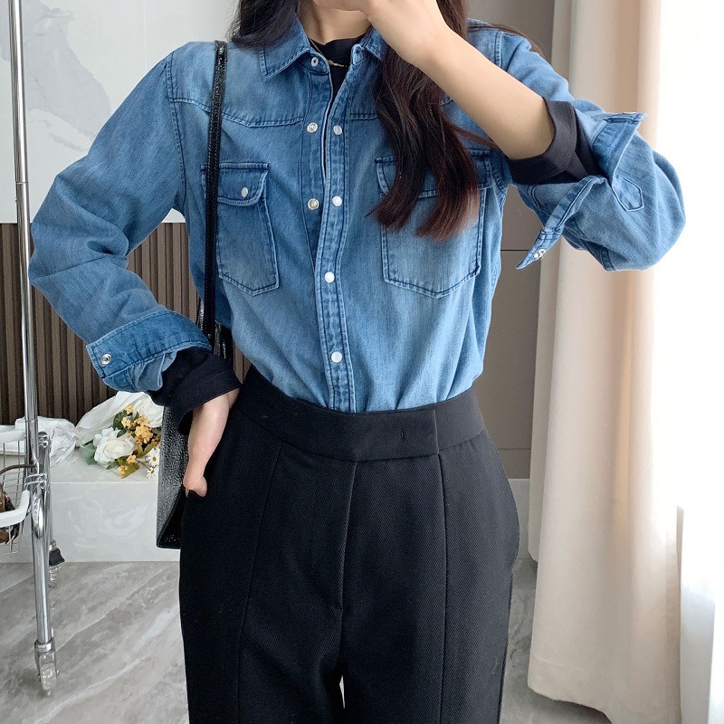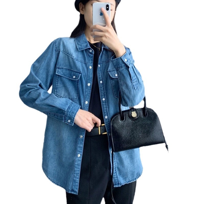 Главная страница > 617 # Новая осенняя модель 2025: джинсовая рубашка прямого кроя с эффектом потертости, с жемчужными пуговицами и длинными рукавами для женщин