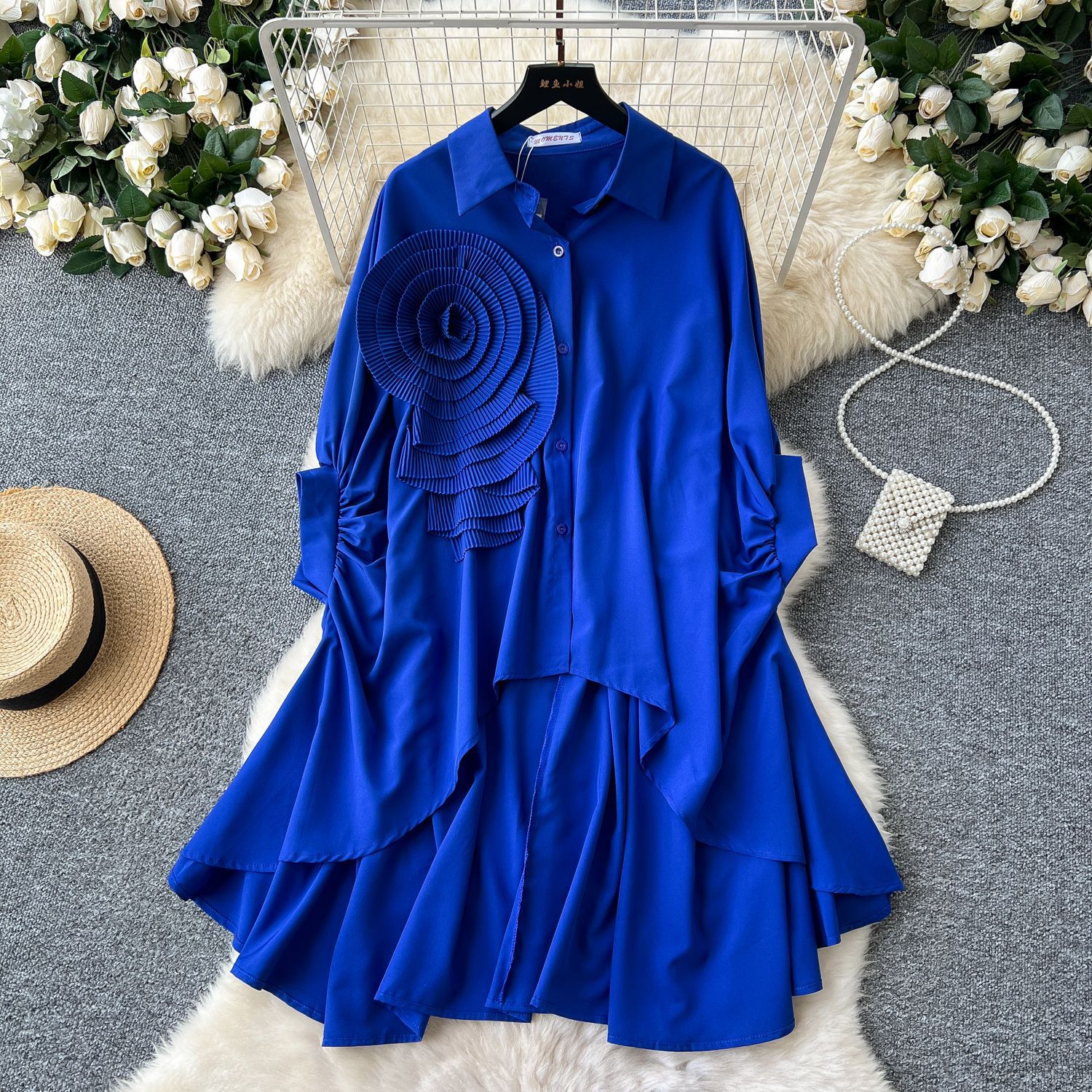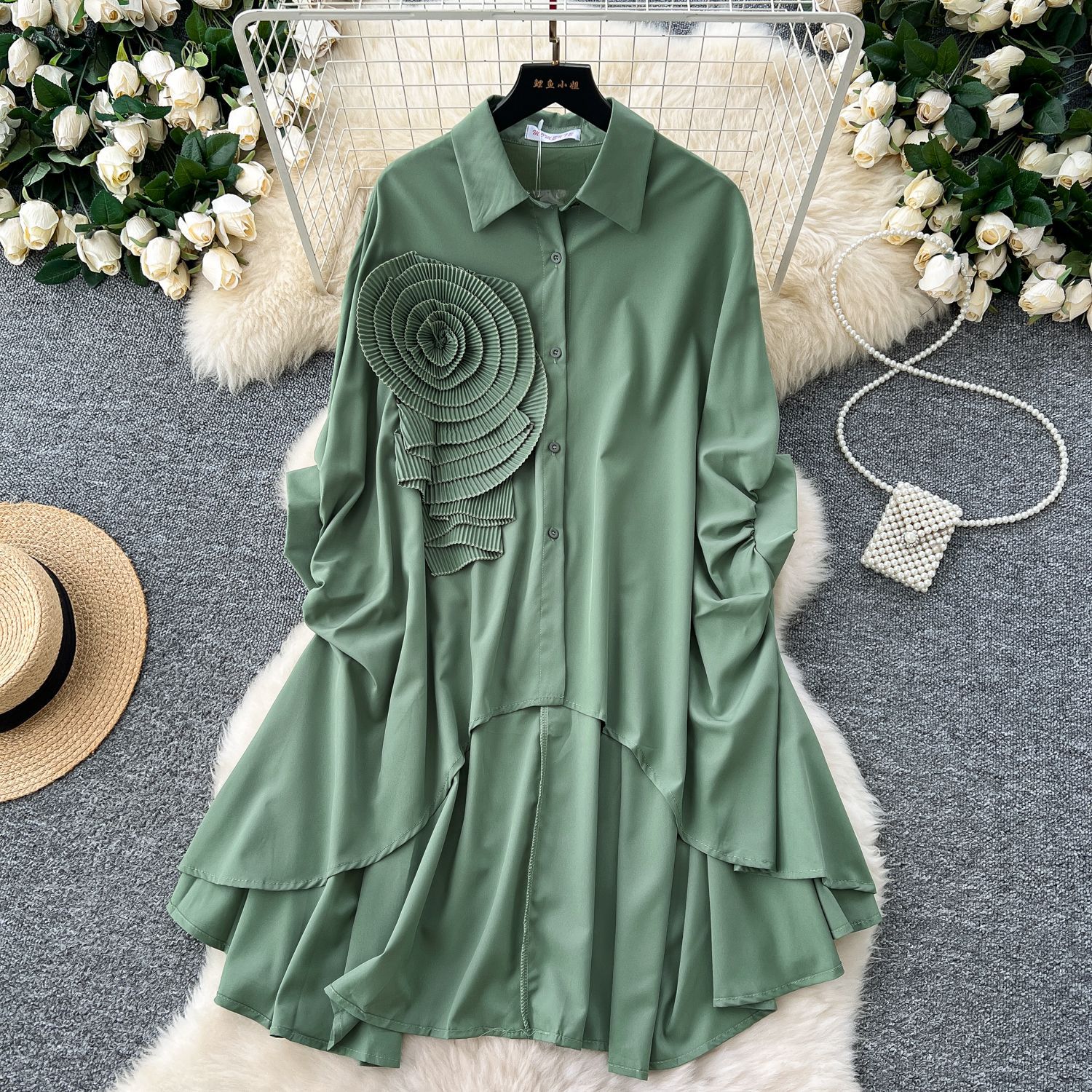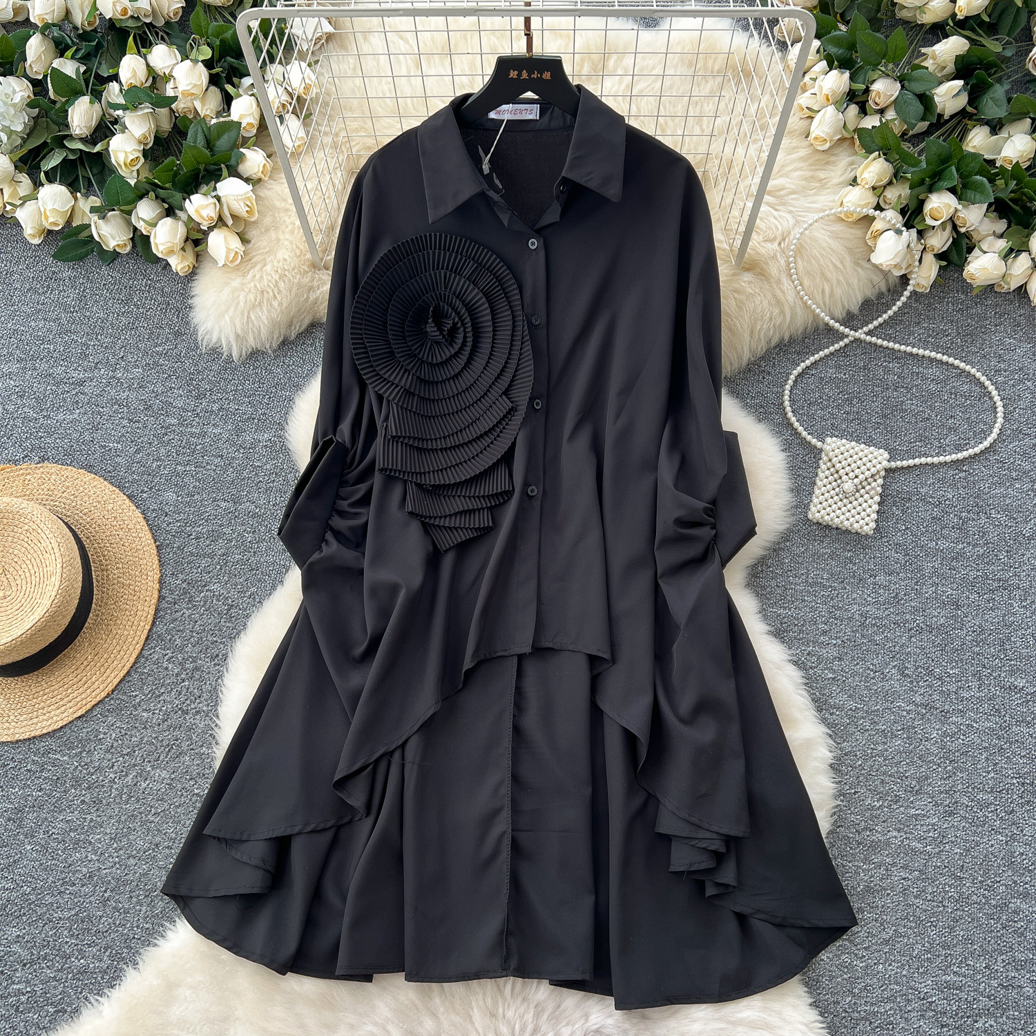 Главная страница > Корейская версия премиум-чувства Polo воротник рубашка женская осень трехмерные цветы свободные нерегулярные складки дизайн топ