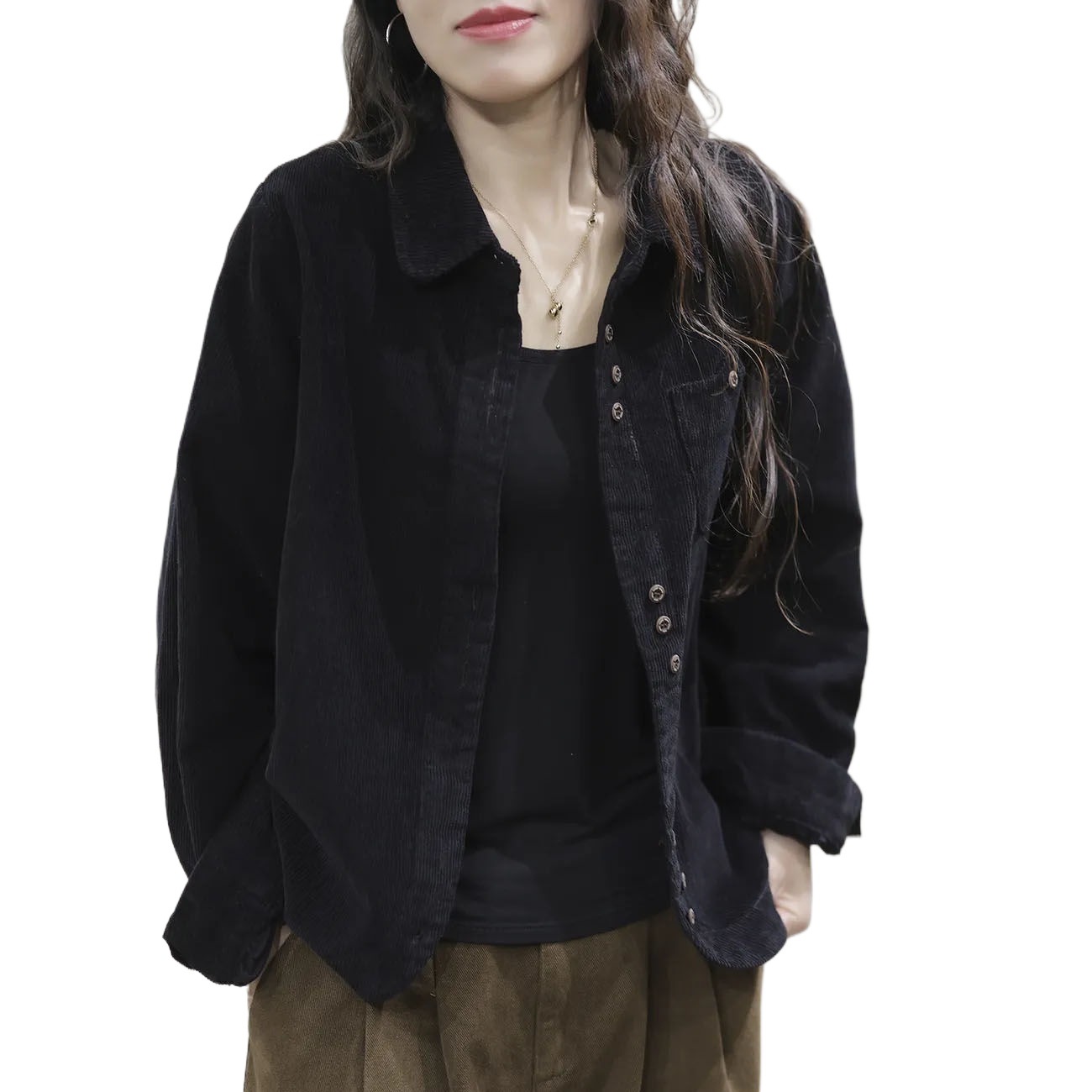 Главная страница > 2025 весна и осень новая рубашка литературный повседневный мода черный длинный рукав с отворотом вельвет женская рубашка кардиган женский