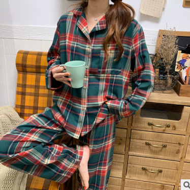 Пижама женская весна-осень кардиган с длинным рукавом костюм в клетку пудровый корейский стиль сладкая свежесть Студенческая Домашняя одежда свободный костюм