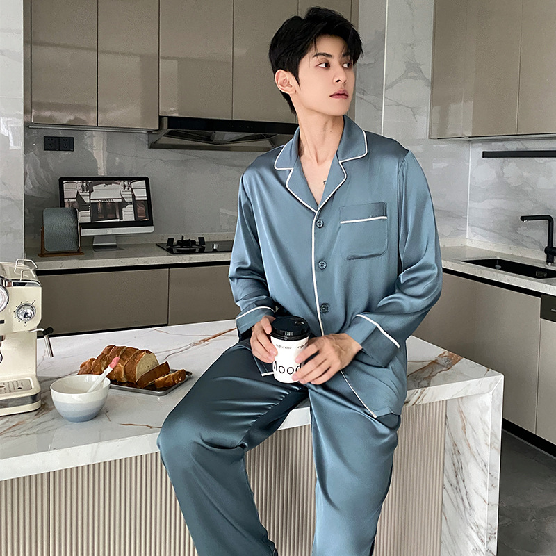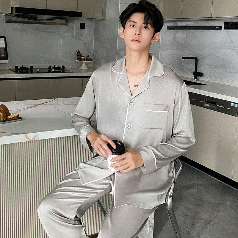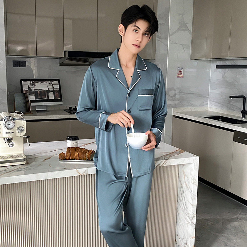 Корейская версия пижамы мужской с длинными рукавами и шелком весной и осенью