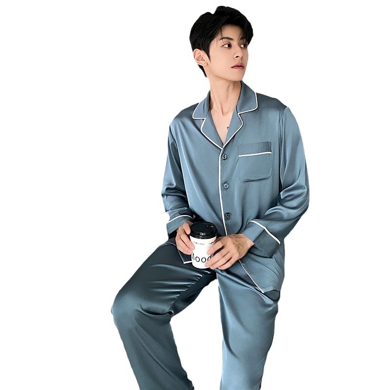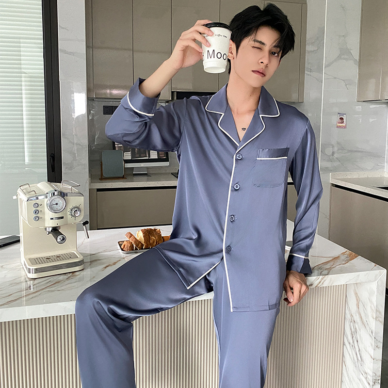 Главная страница > Корейская версия пижамы мужской с длинными рукавами и шелком весной и осенью