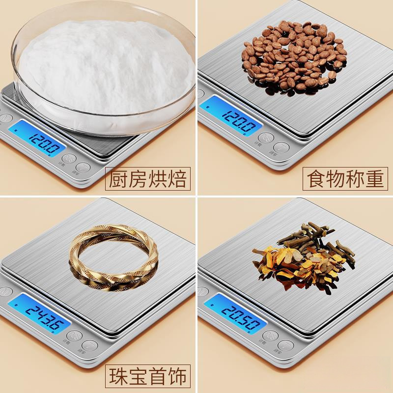 Перезаряжаемая трехразовая модель, градуированная чаша 3 кг/0,1 г + двойной поддон + мерный стакан + водонепроницаемая наклейка Bada Hao