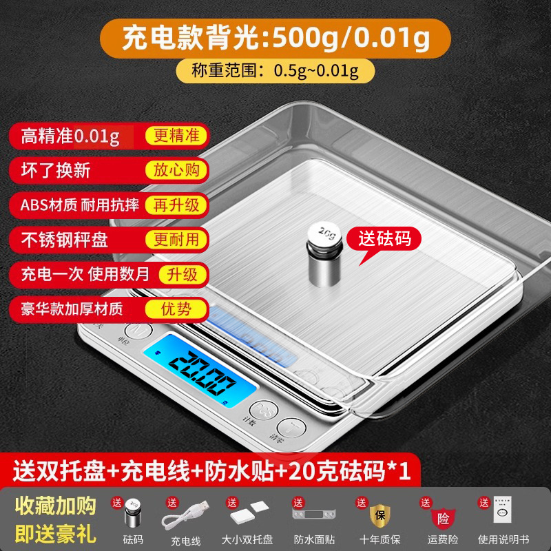 Перезаряжаемая подсветка/500 г/0,01 г в комплекте с двумя лотками + кабелем для зарядки + восемью замечательными подарками.
