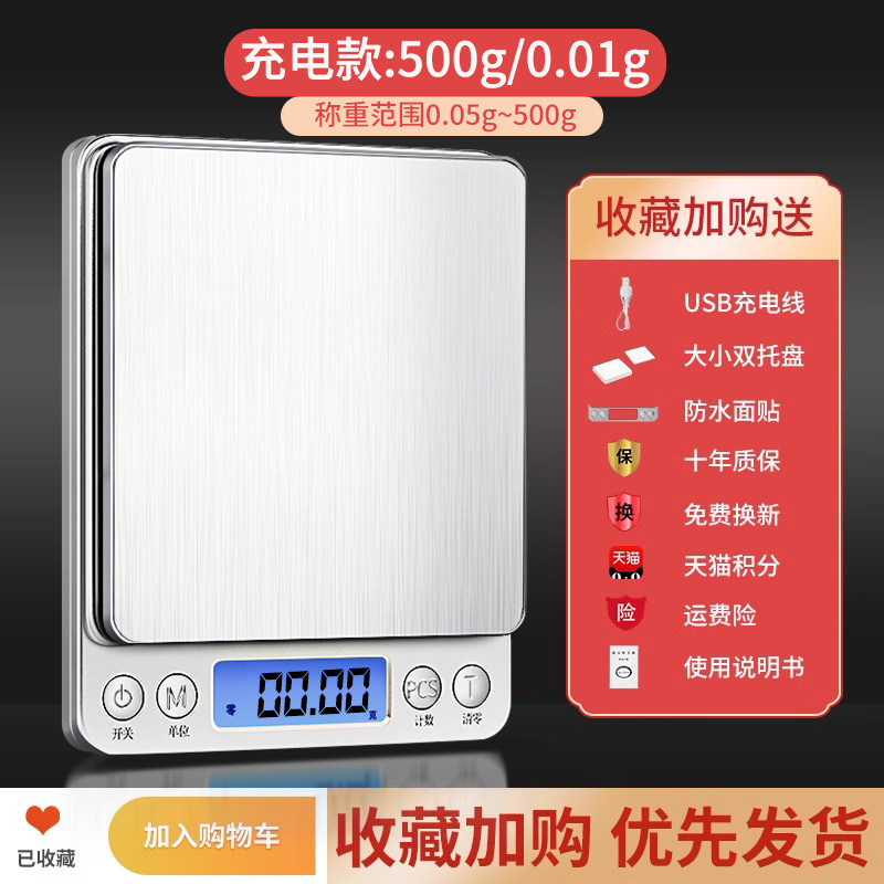 Перезаряжаемая трехцелевая модель, вес 500 г/0,01 г + чаша для весов + двойной поднос + мерный стакан + водонепроницаемая наклейка