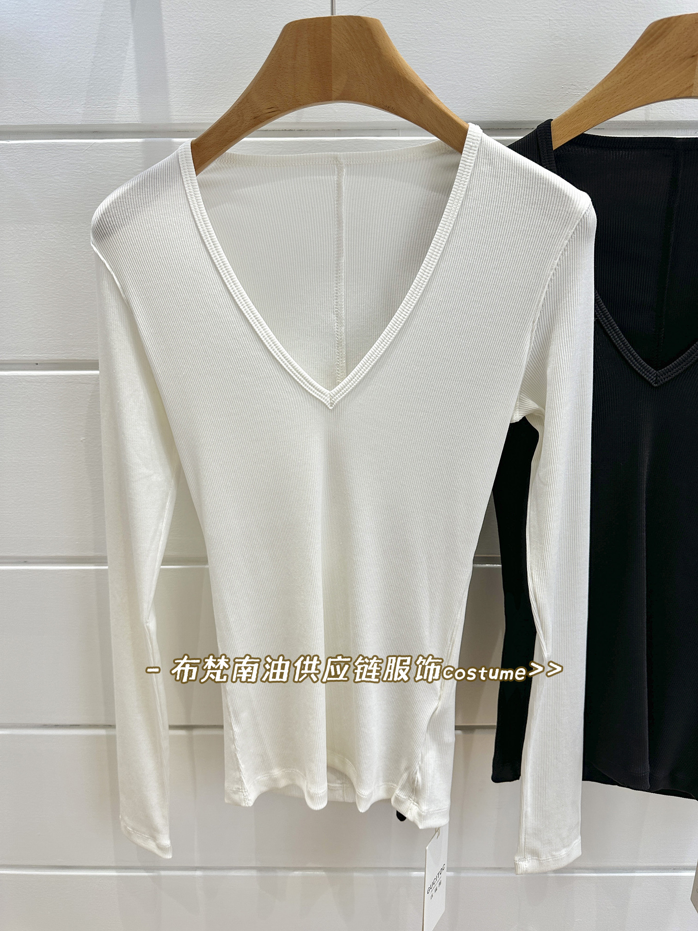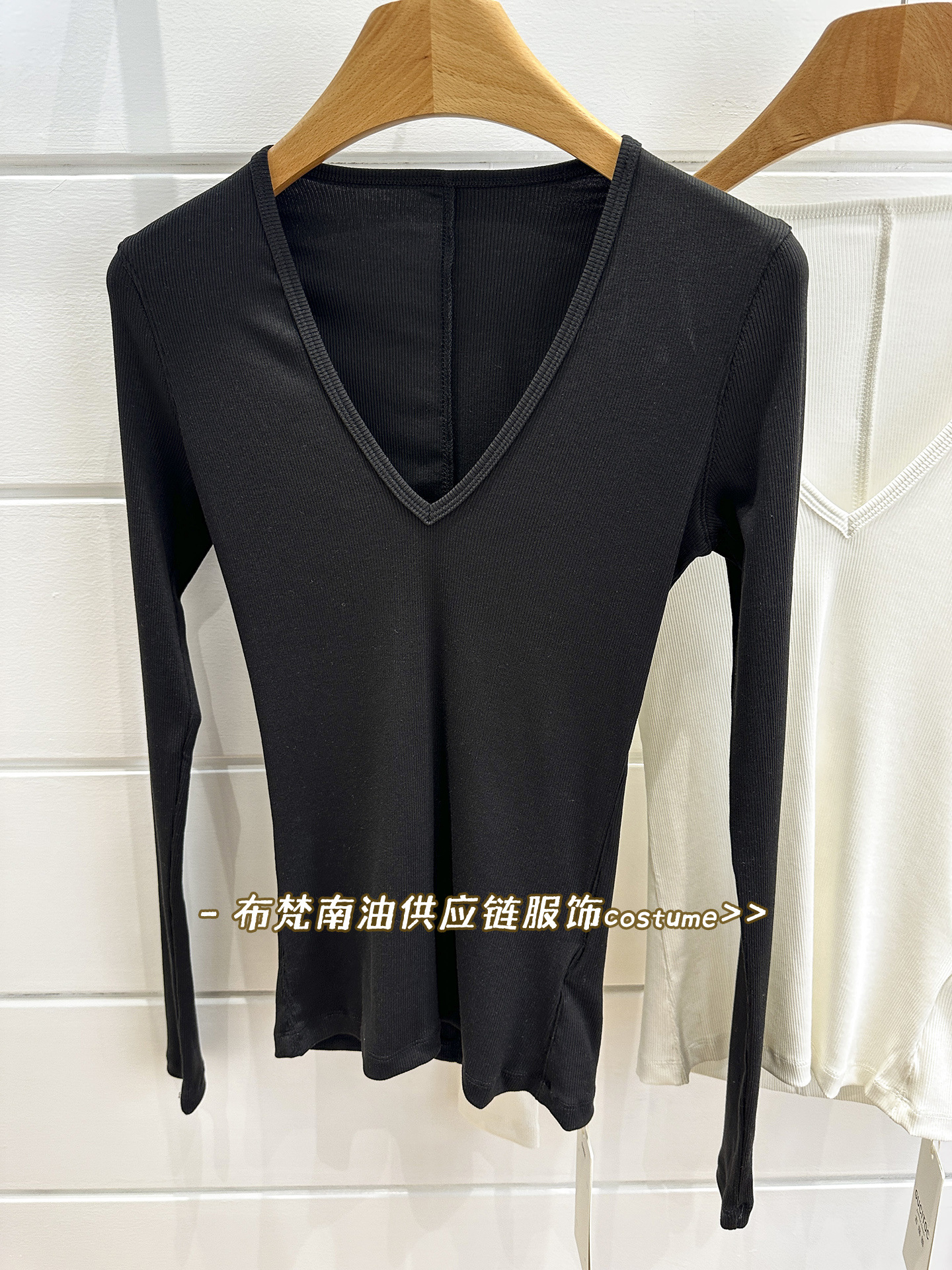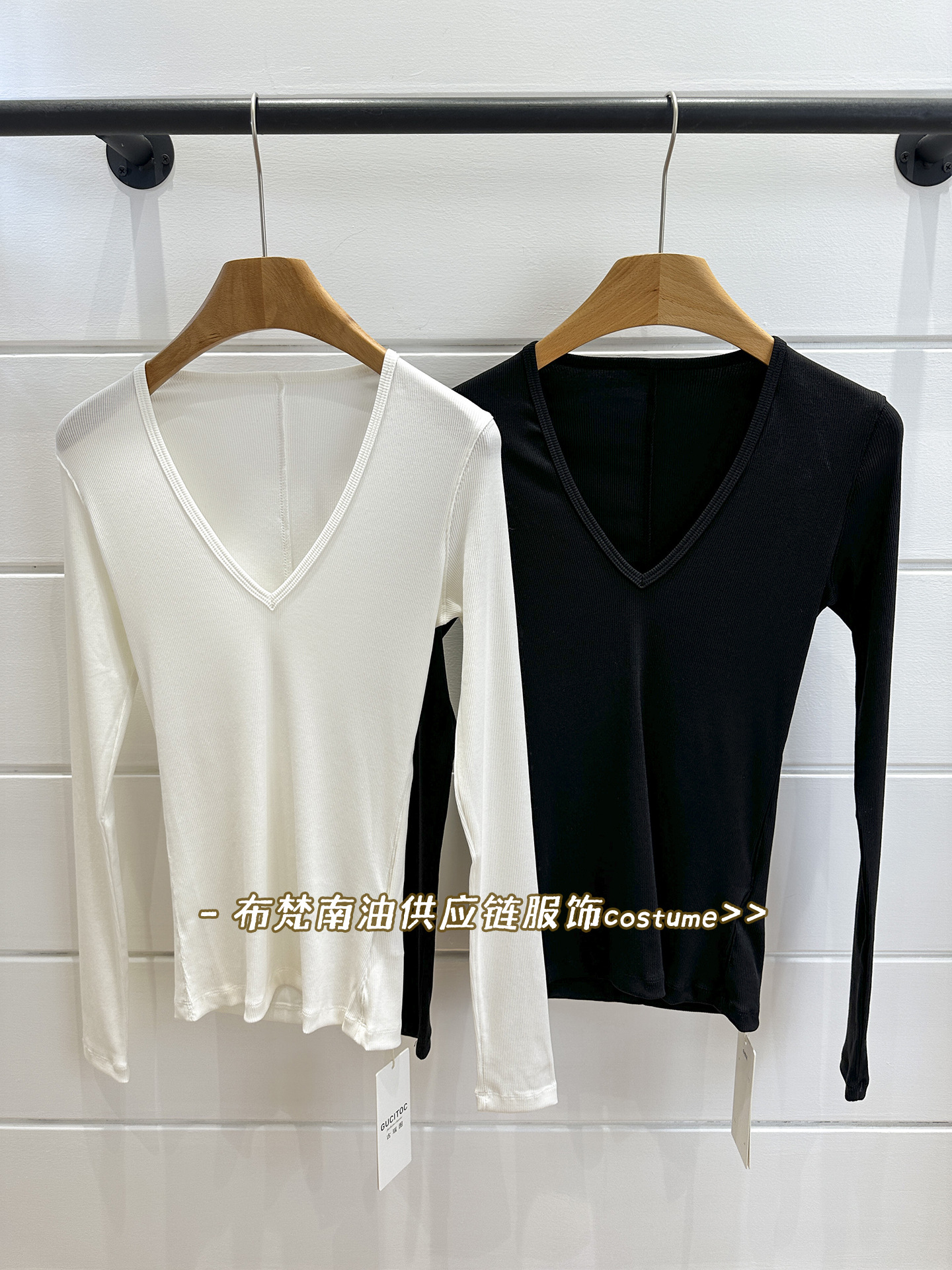 Главная страница > Shenzhen Nanyou Женская однотонная минималистичная футболка из тенселя с v-образным вырезом и длинными рукавами для женщин 25 Весна/Лето Новая универсальная базовая рубашка для похудения.