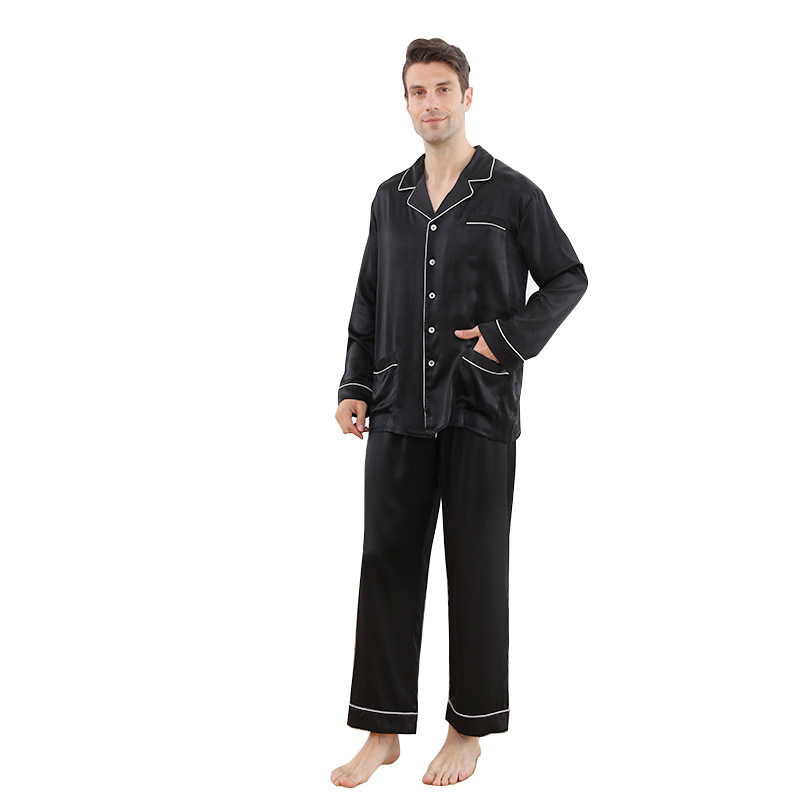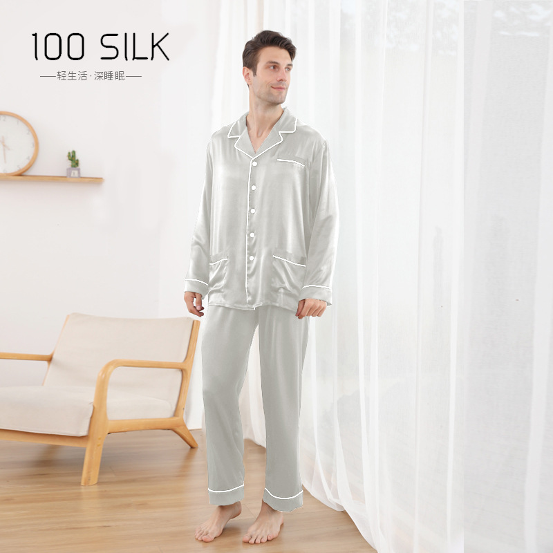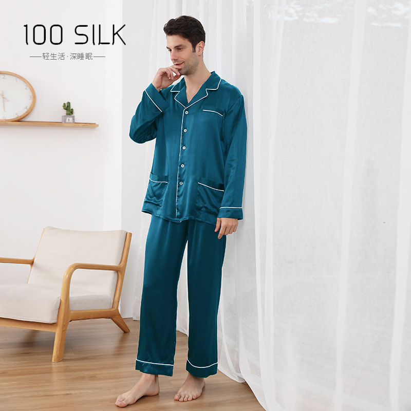 Главная страница > Новые шелковые пижамы с отворотом через границу мужской костюм оптом 25 мм 100 шелковые брюки с длинным рукавом домашняя одежда