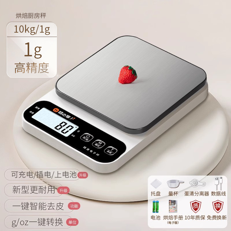 Белая трехцелевая модель весов из нержавеющей стали, 10 кг/1 г [с подсветкой и бесплатной подарочной упаковкой]