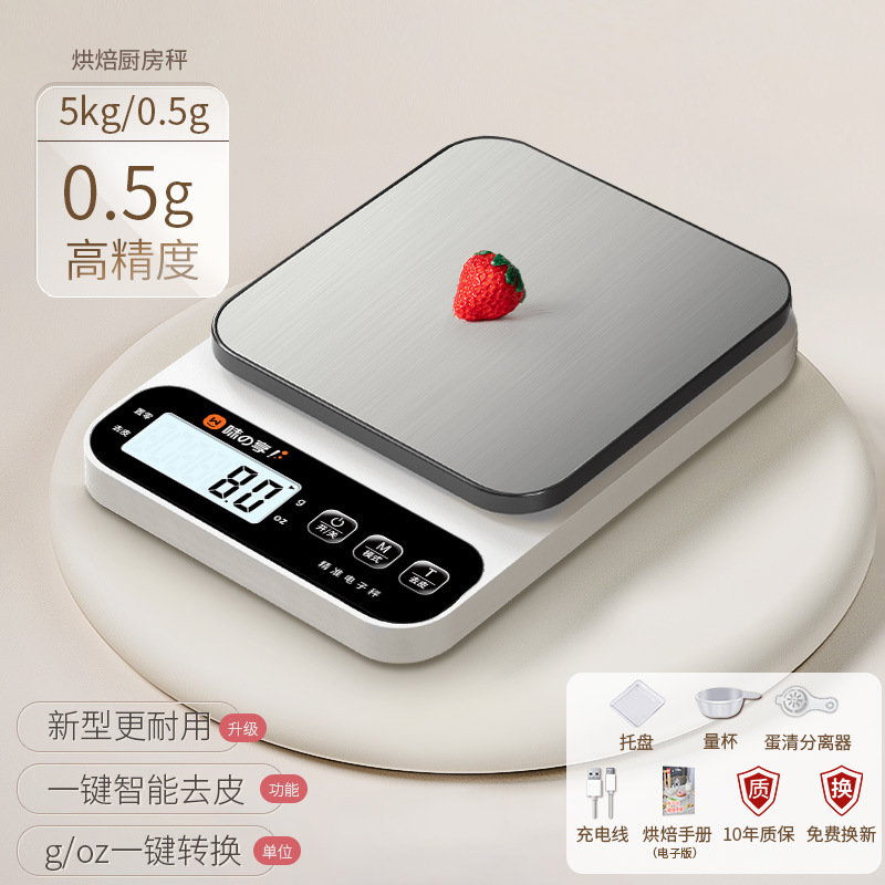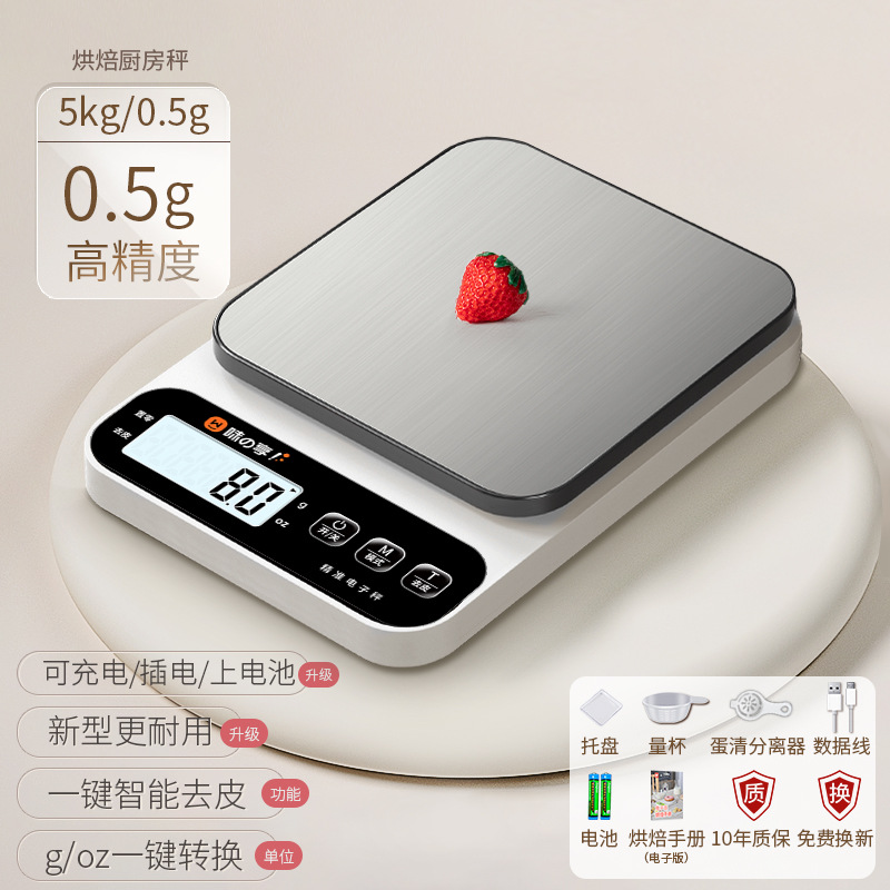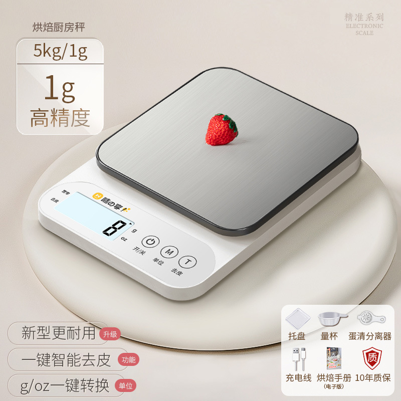 Белая трехцелевая модель весов из нержавеющей стали, 5 кг/1 г [с подсветкой и бесплатной подарочной упаковкой]