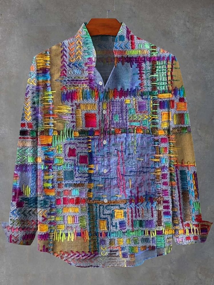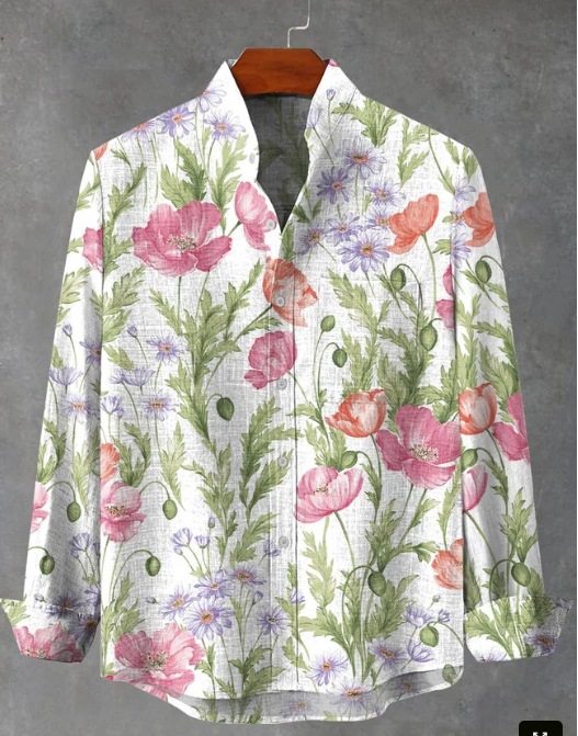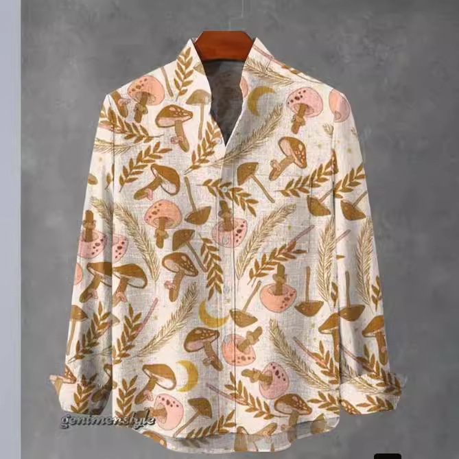Главная страница > Трансграничный весенне-осенний мужской воротник с длинным рукавом рубашка клетчатая цветочная грибная 3D-печать Юго-Восточной Азии стиль джентльмен мода