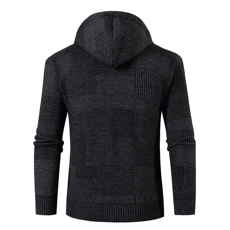 Главная страница > Внешняя торговля трансграничный зимний новый мужской повседневный свитер с капюшоном повседневная клетчатая вязаная куртка бархатный утолщенный кардиган