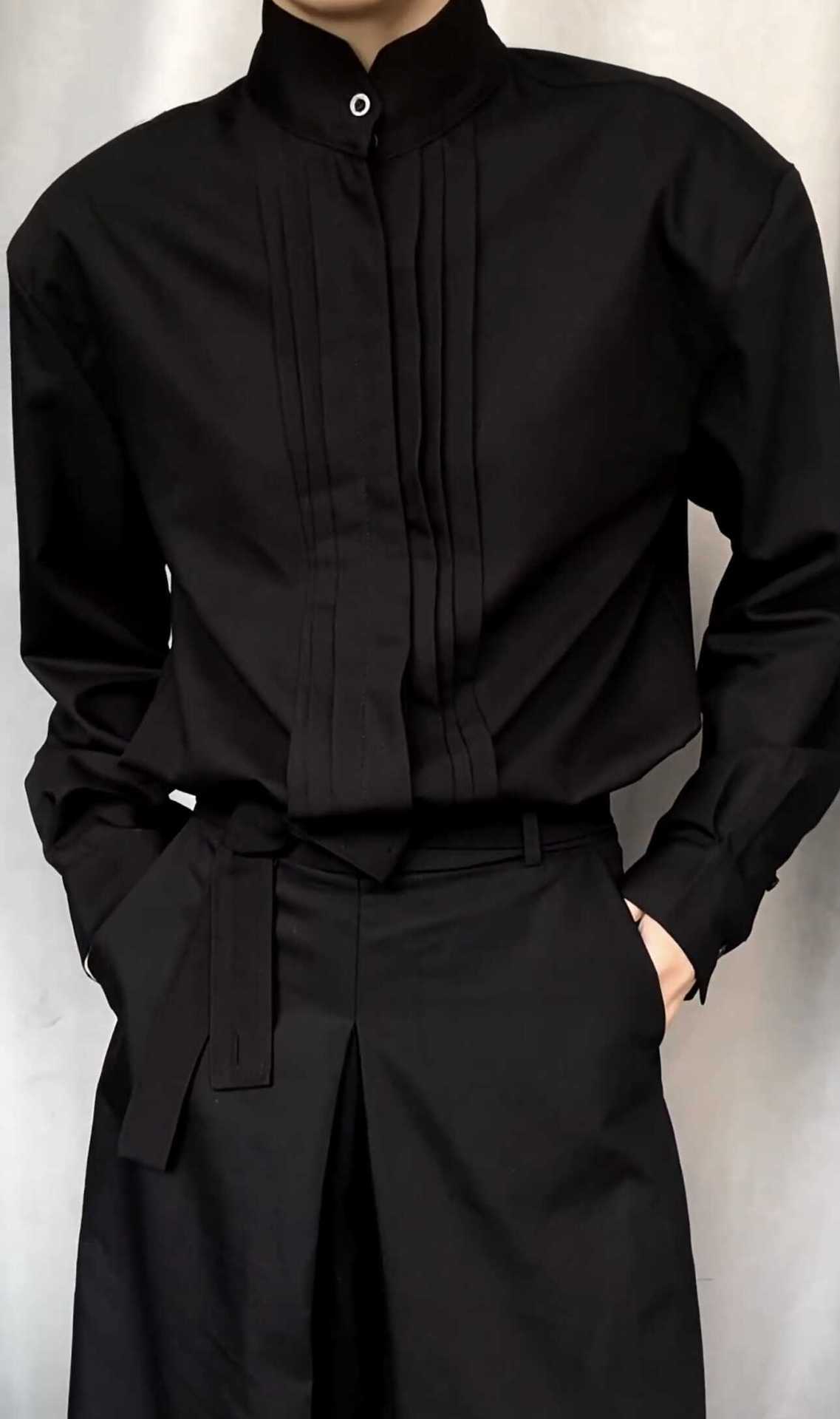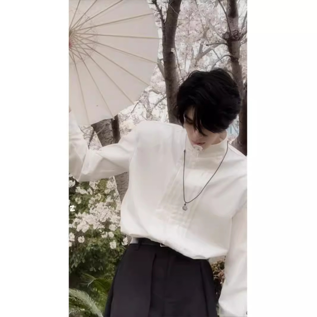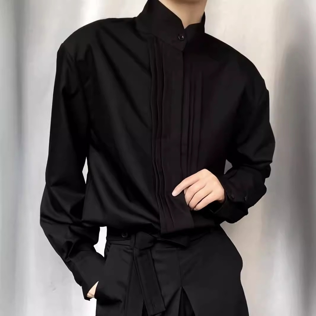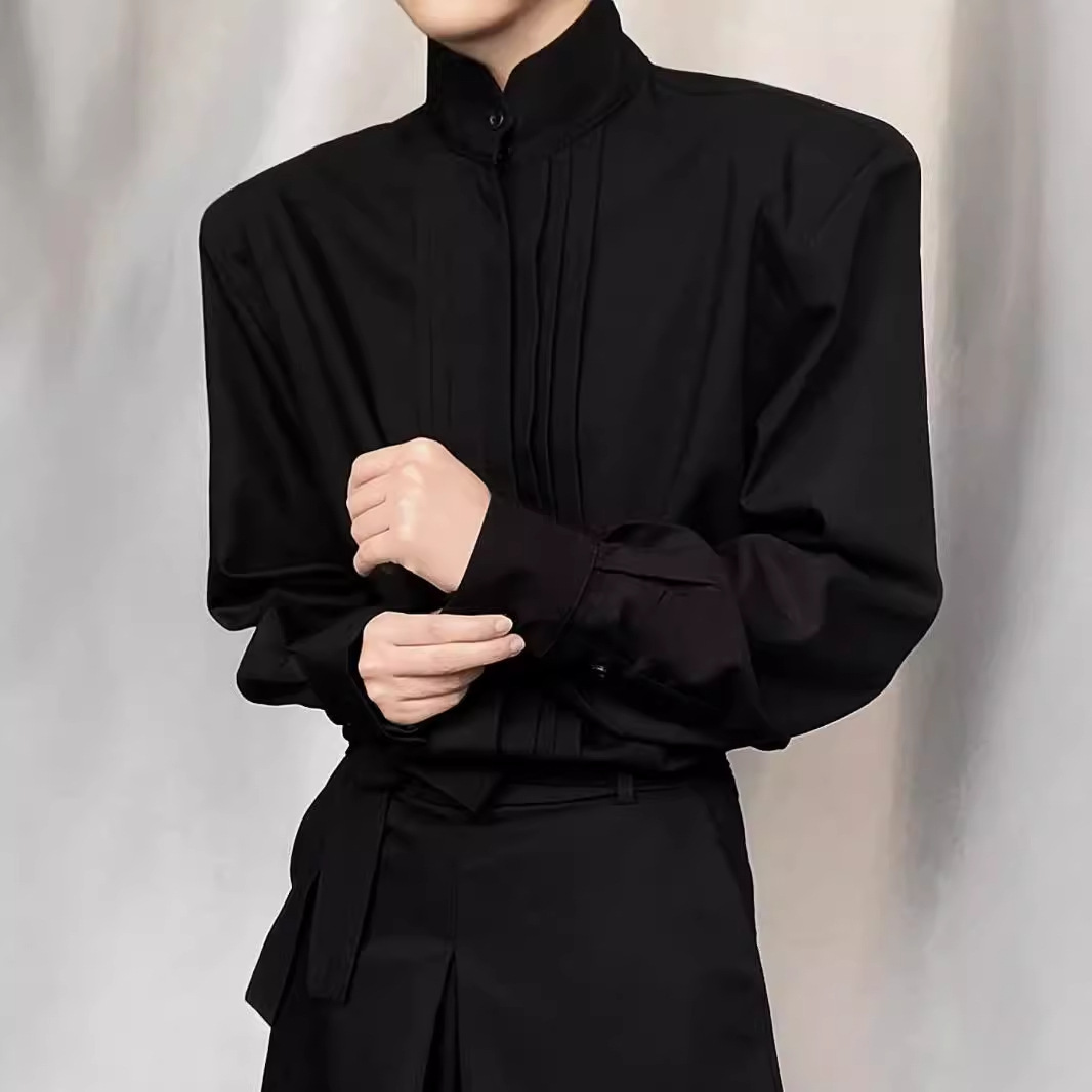 Главная страница > Рубашка высокого качества, плиссированная куртка с подплечниками, модный европейский и американский уличный костюм, внутренняя рубашка для мужчин