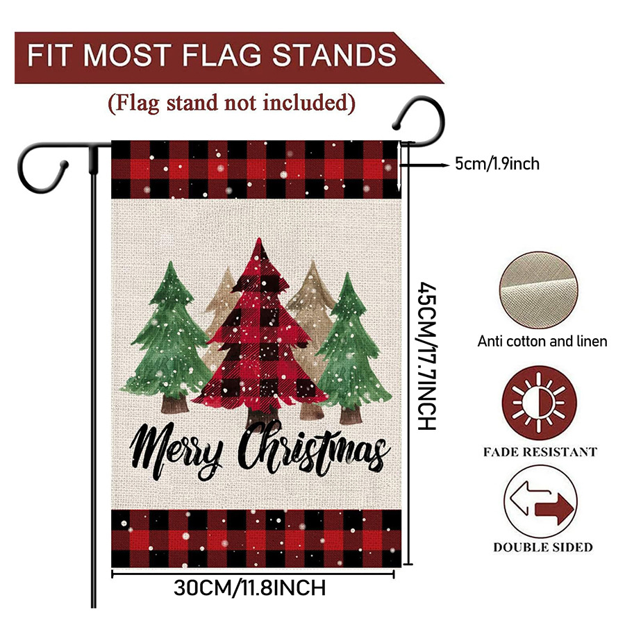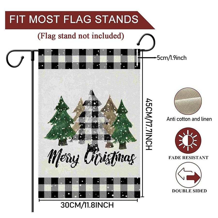 Веселая рождественская елка, сад, клетчатый двор, деревенский фермерский дом, уличная рождественская елка, двусторонний праздничный декоративный флаг