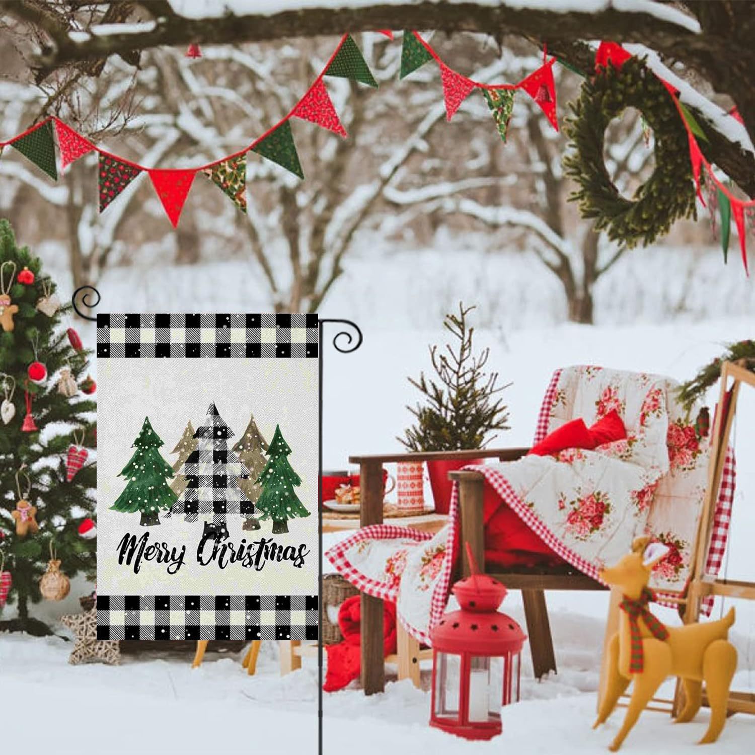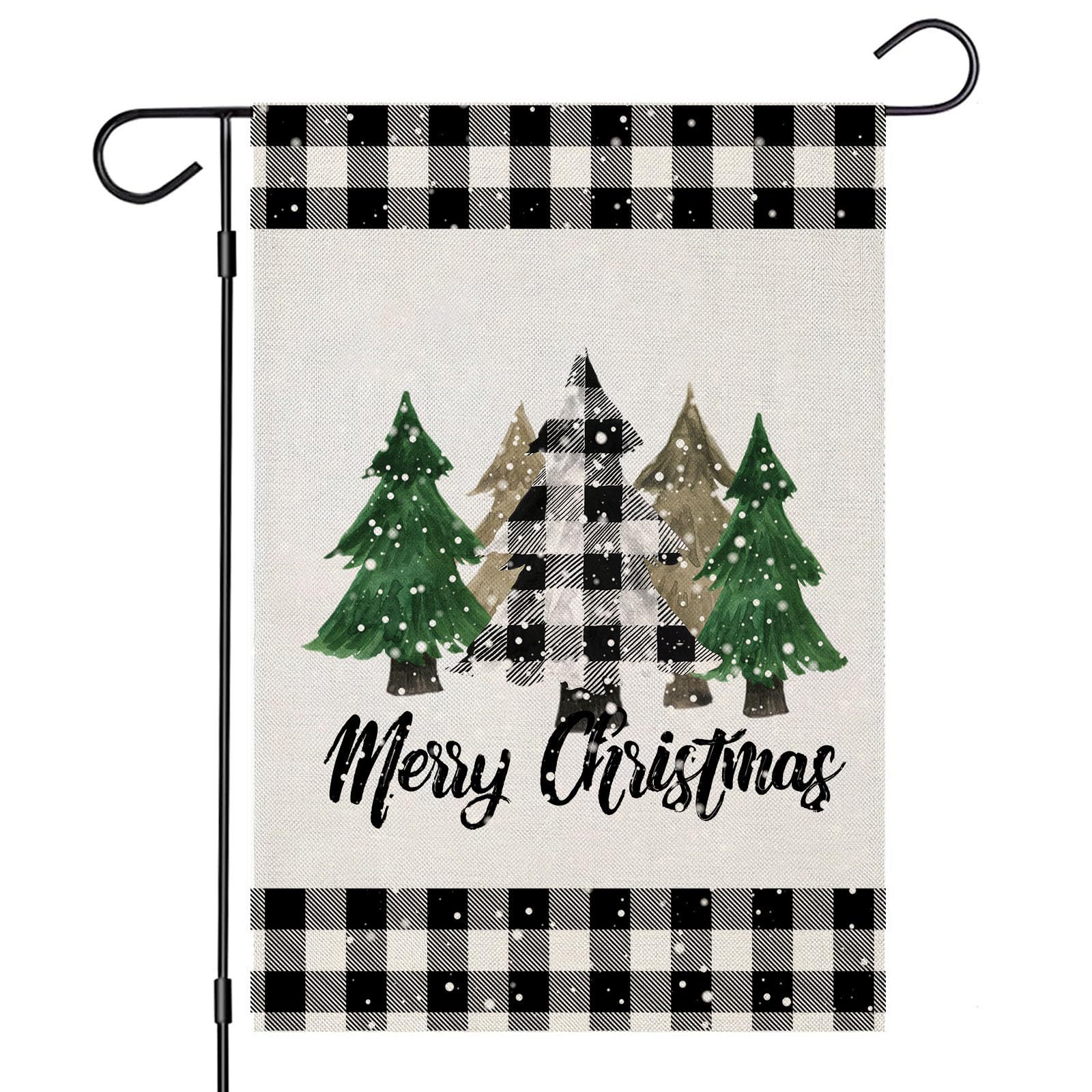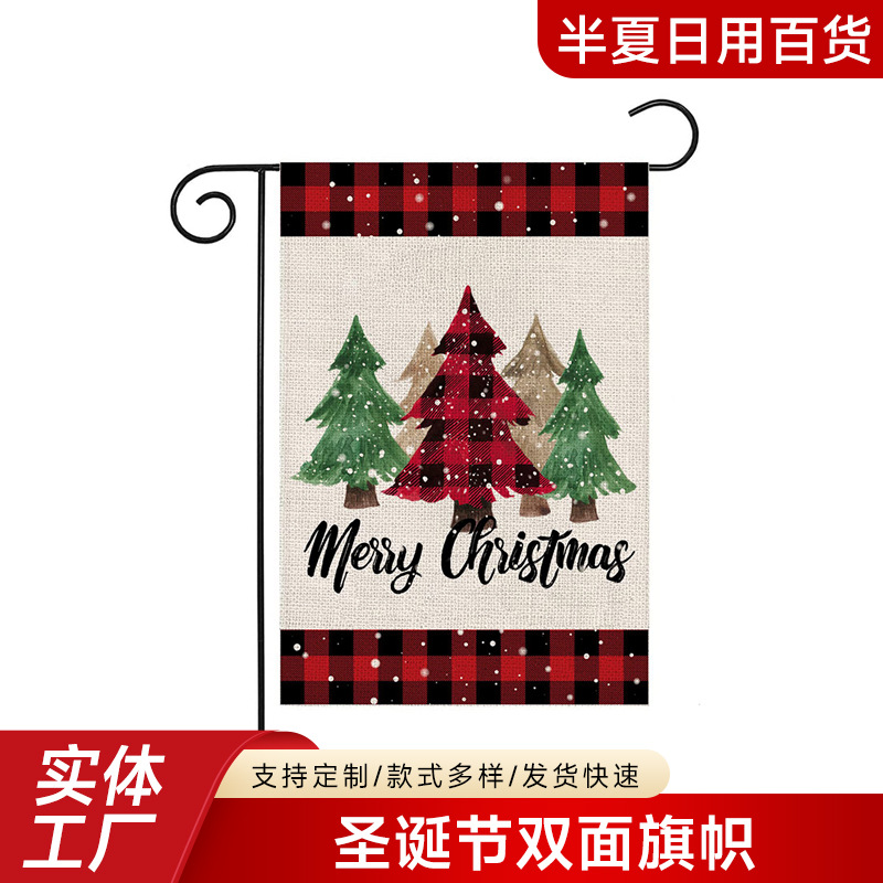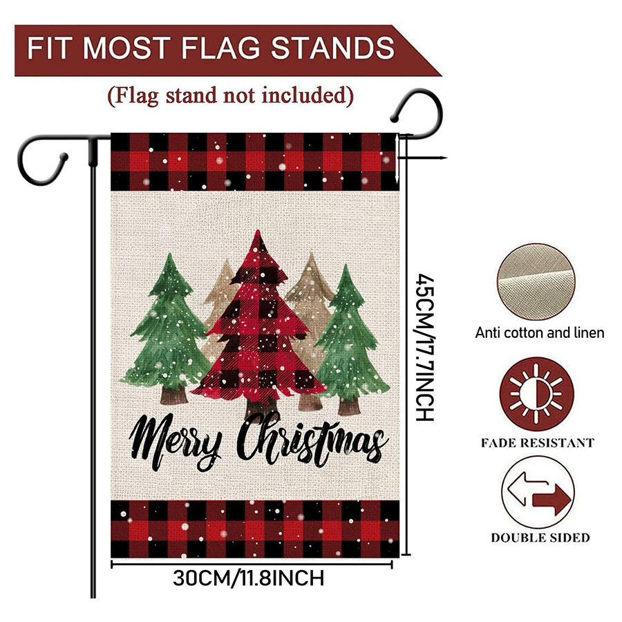 Главная страница > Веселая рождественская елка, сад, клетчатый двор, деревенский фермерский дом, уличная рождественская елка, двусторонний праздничный декоративный флаг