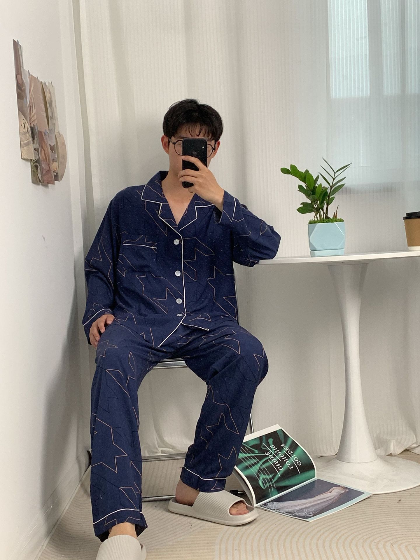 Главная страница > Весенний и осенний мужской легкий и дышащий шелковый пижама с длинными рукавами
