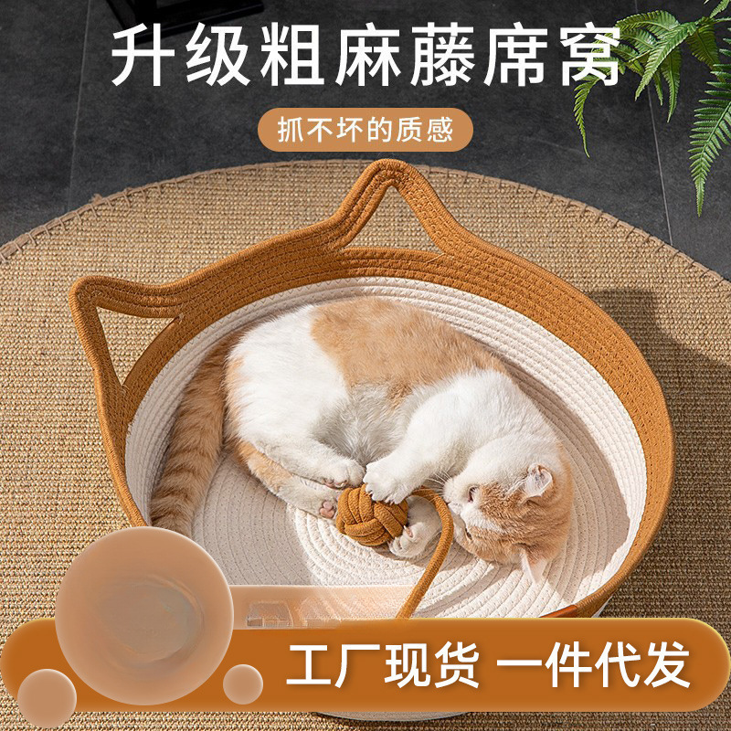 Главная страница > Летний домик для кошек, лежанка для кошек, лежанка для собак, доска для когтей, летняя лежанка для животных, товары для кошек, дышащая лежанка для кошек из ротанга, подходит для всех сезонов