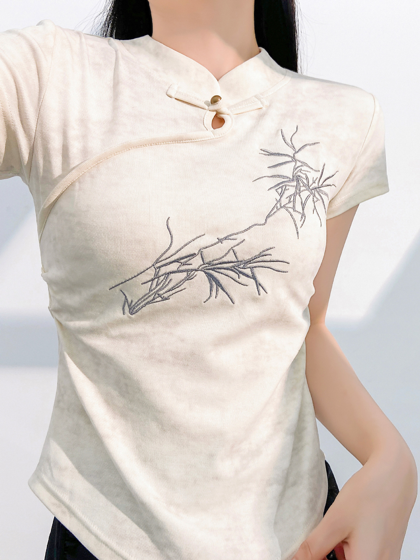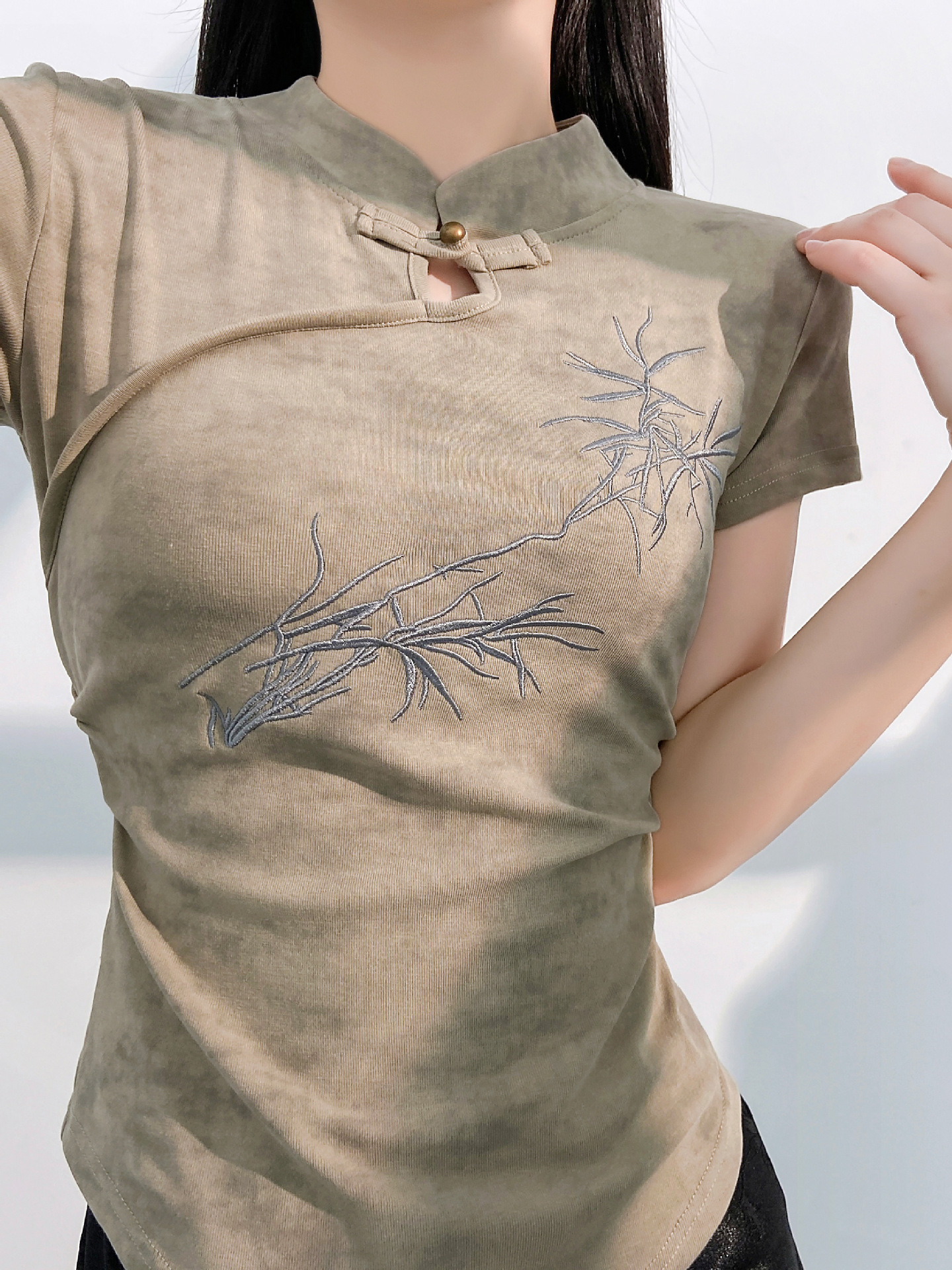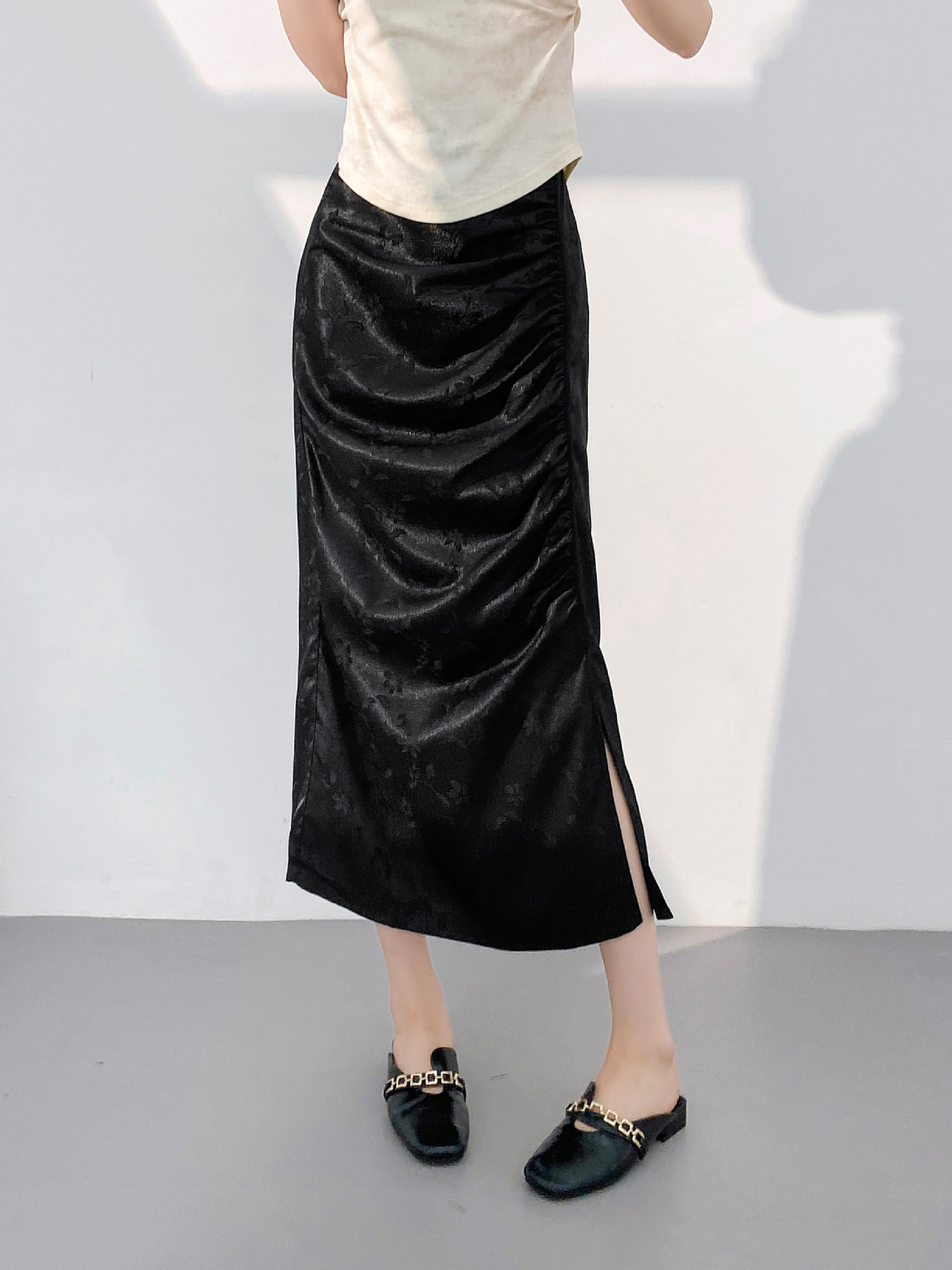 Главная страница > 2025 новый летний костюм в китайском стиле для женщин, утягивающий талию, с открытым животом, короткий рукав, атласный жаккард, элитная юбка