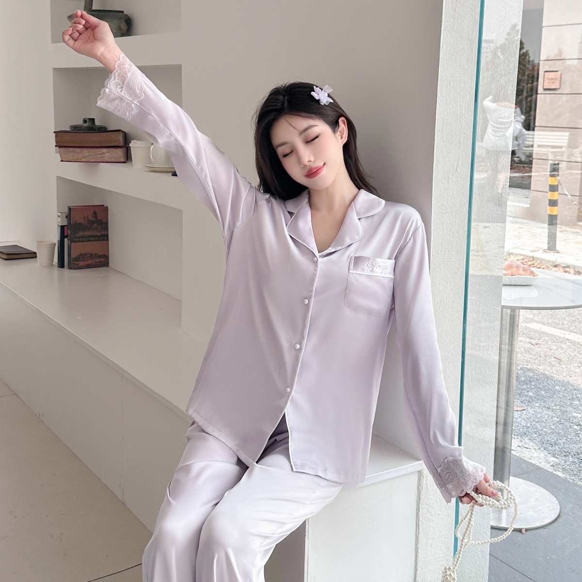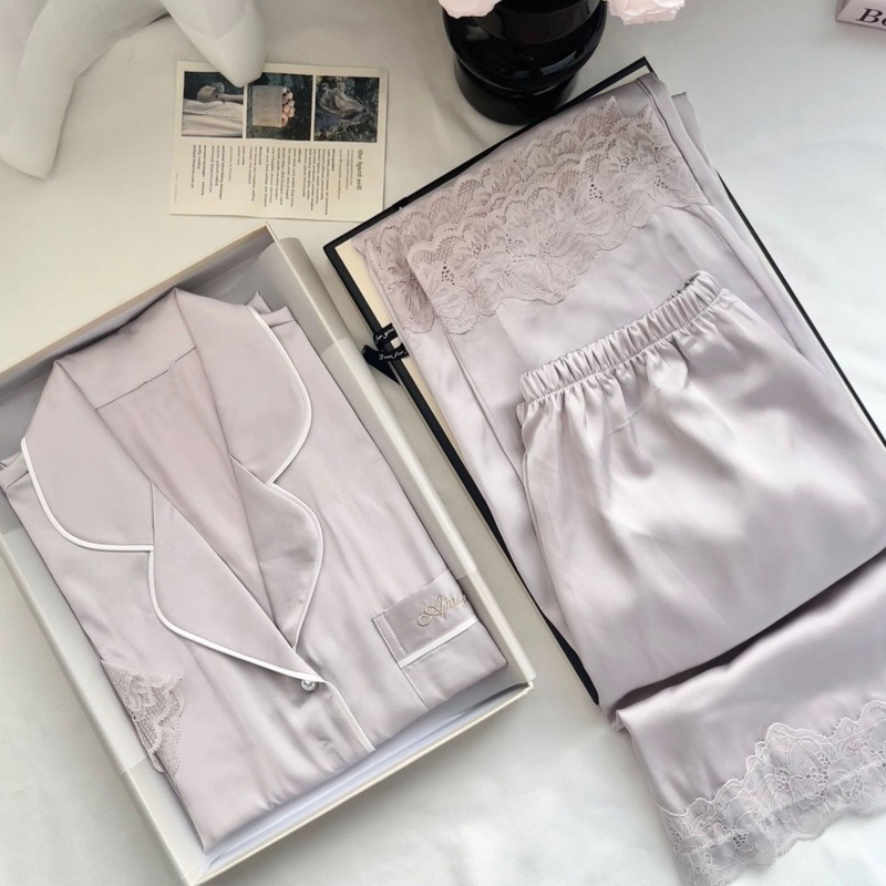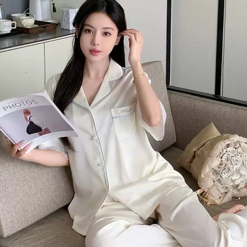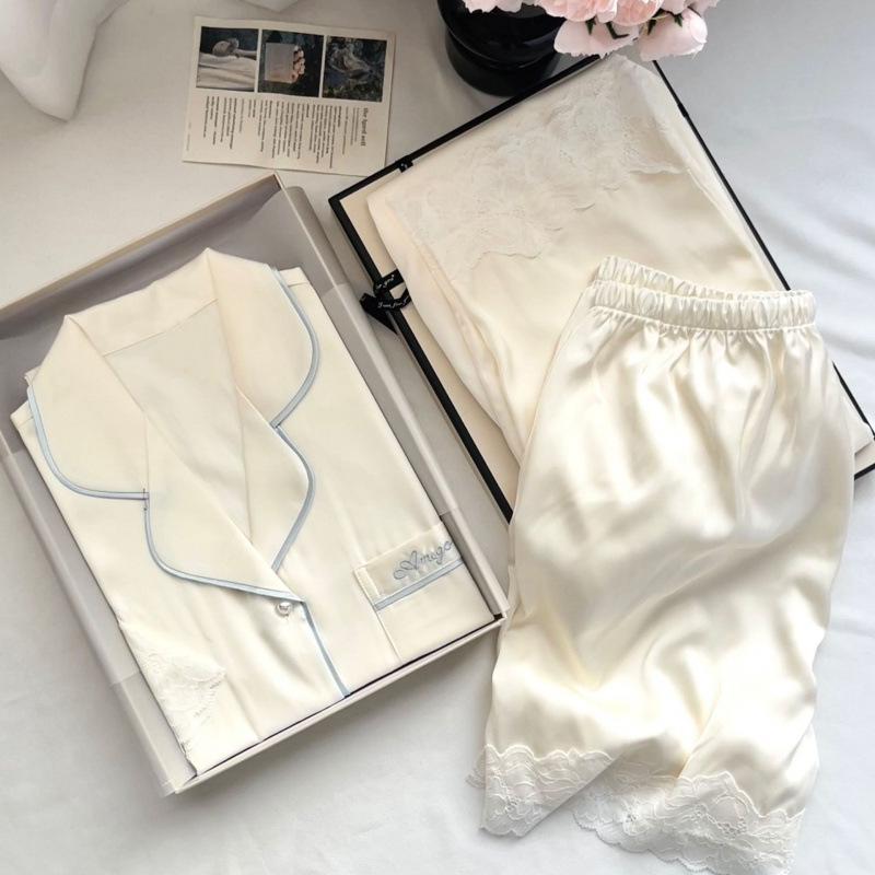 Главная страница > [Жемчужная Танси] Женские пижамы из ледяного шелка, новая весенне-летняя кружевная одежда премиум-класса с короткими рукавами из ледяного шелка, домашняя одежда из двух предметов