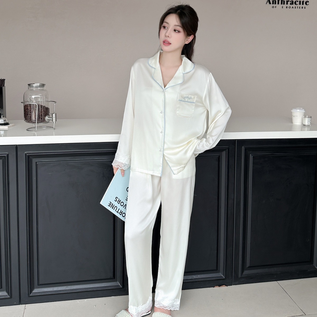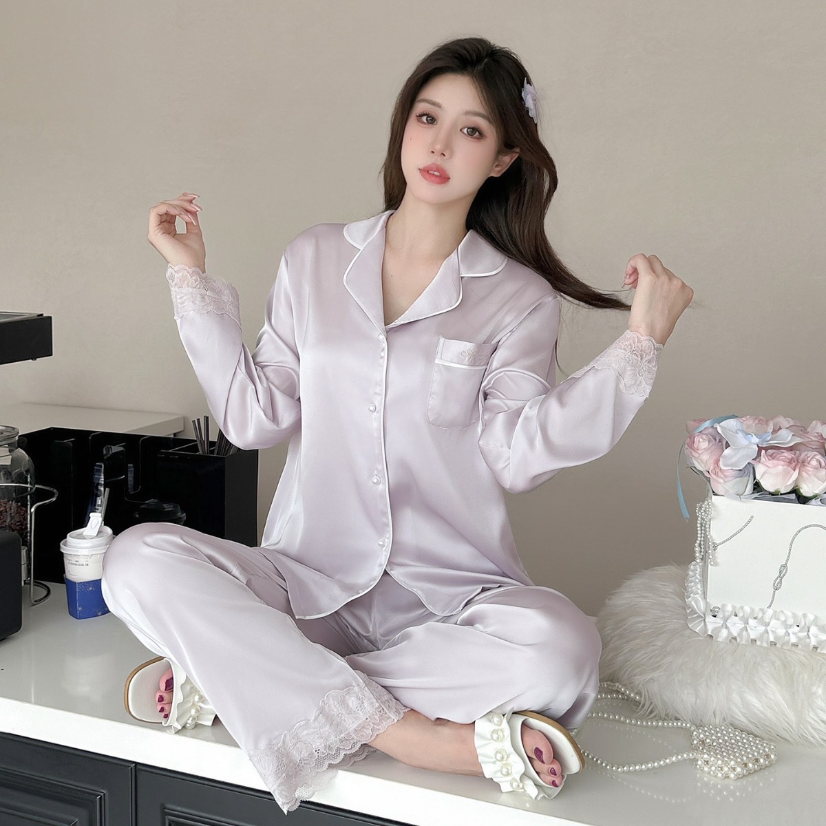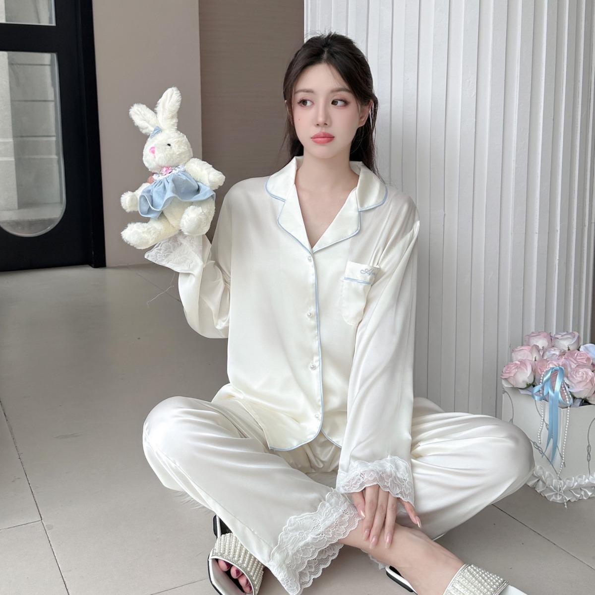 Главная страница > [Жемчужная Танси] Женские пижамы из ледяного шелка, новая весенне-летняя кружевная одежда премиум-класса с короткими рукавами из ледяного шелка, домашняя одежда из двух предметов
