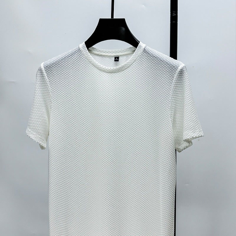 Главная страница > Новая мужская футболка из ледяного шелка, быстросохнущая, с короткими рукавами, летняя, тонкая, дышащая, повседневная, однотонная, спортивная, свободная