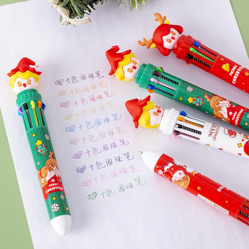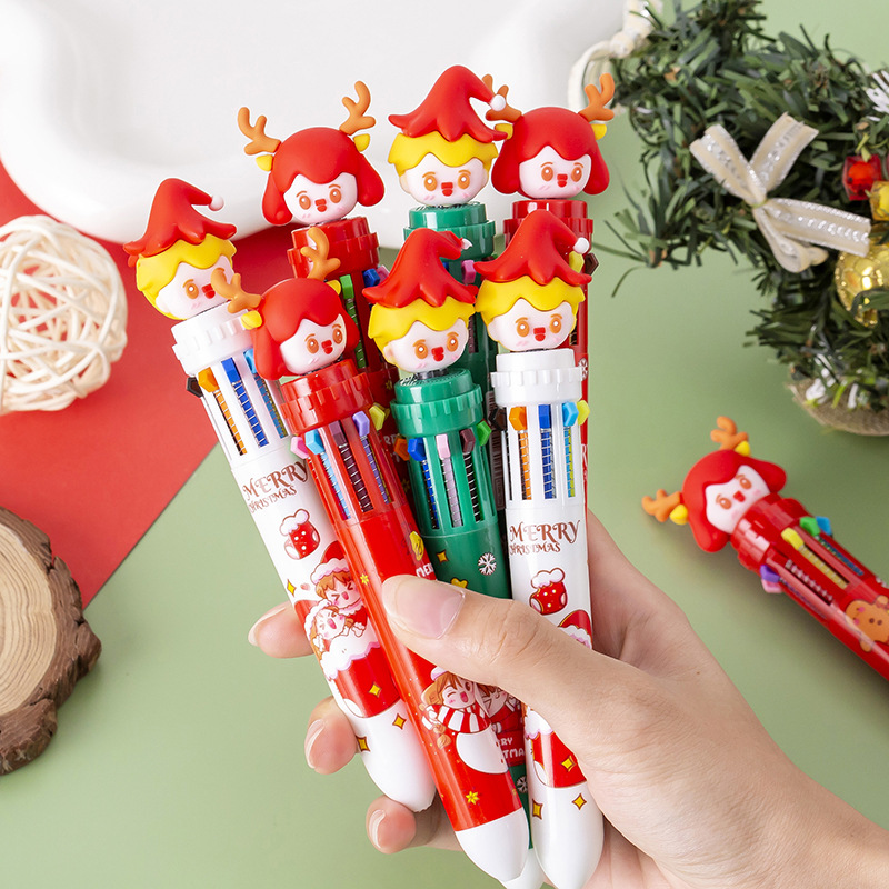 Главная страница > Рождественская кукла Шариковая ручка десяти цветов Детская Рождественская подарочная ручка Студент 10 цветов пресс-ручка Цветная ручная масляная ручка