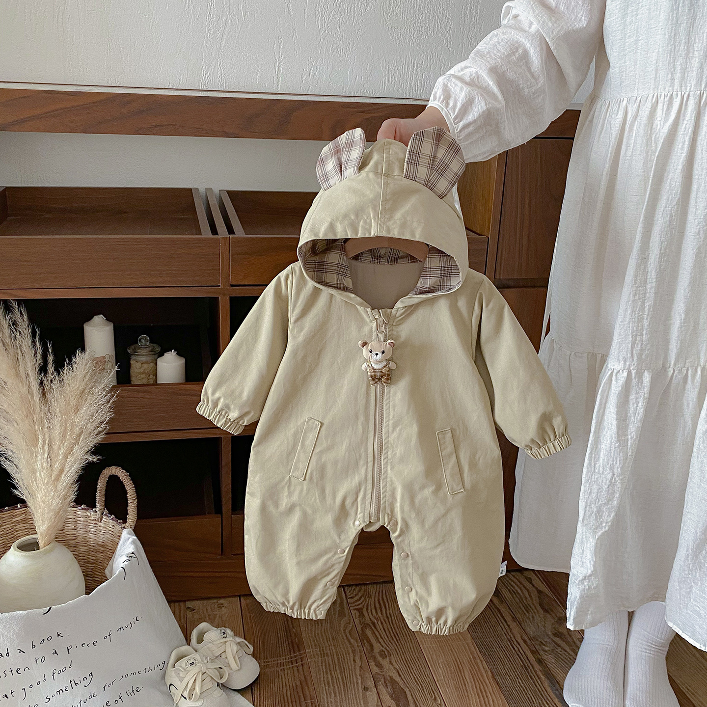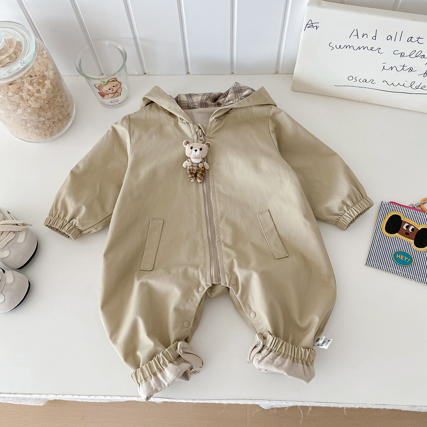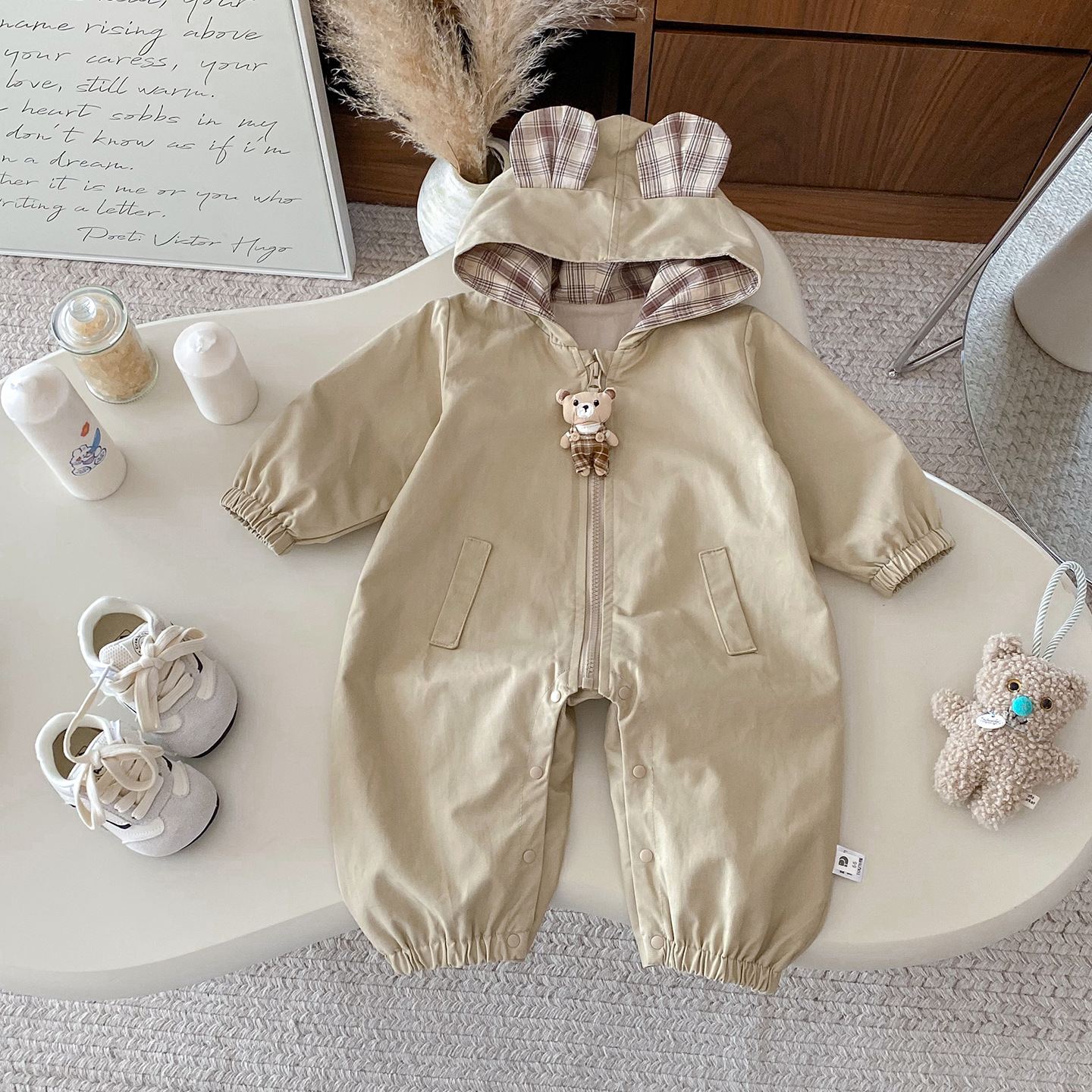 Главная страница > Dianxi 2025, осенняя новая детская рабочая одежда, комбинезон с капюшоном, детская мешковатая одежда в корейском стиле в западном стиле с медведем