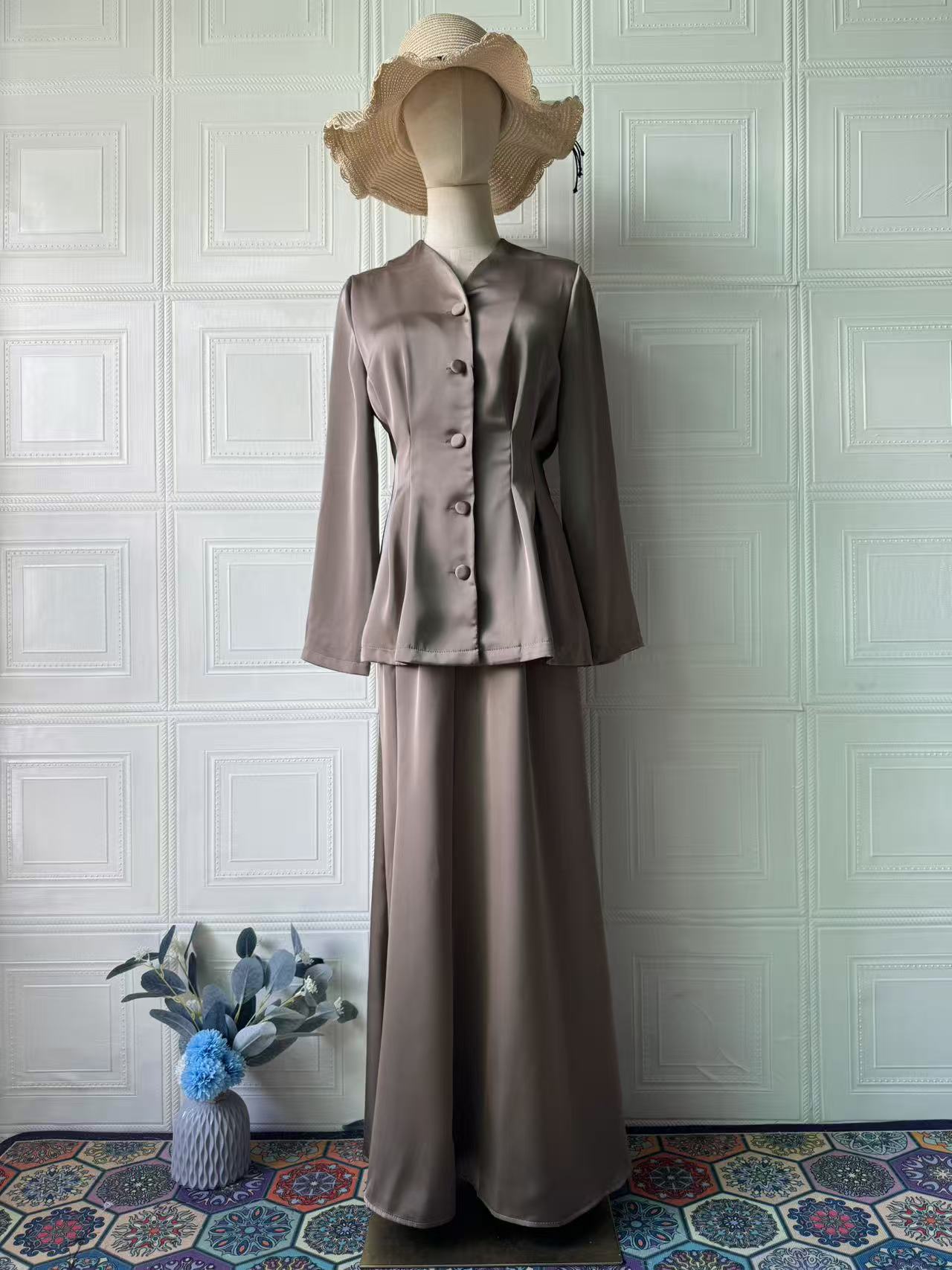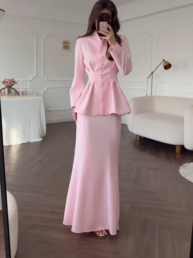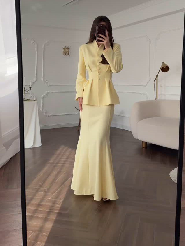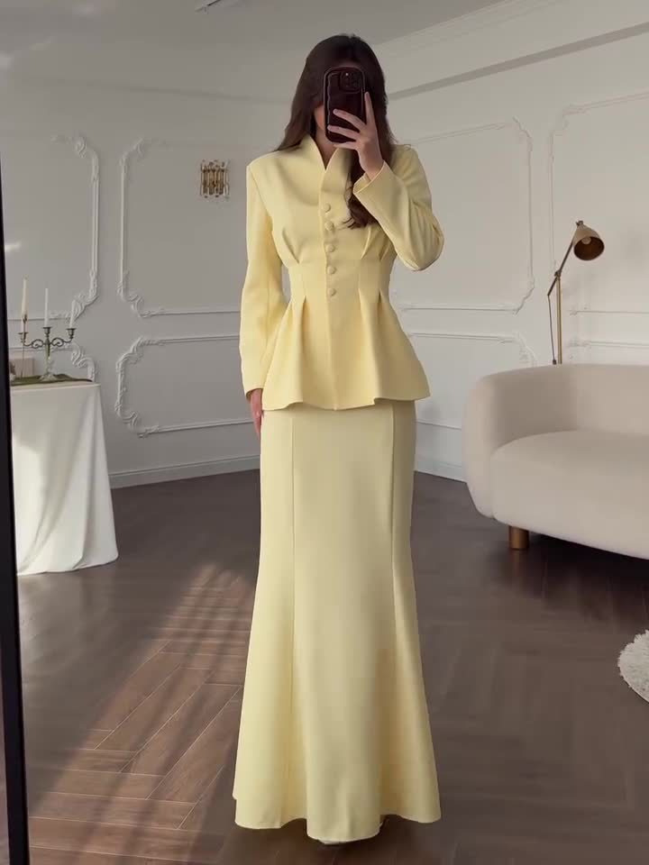 Главная страница > 2025 Весна Европейский и Американский Элегантный Ретро Мягкий Однотонный Топ с Длинным Рукавом Длинная Юбка Элегантный Костюм в Клетку для Женщин