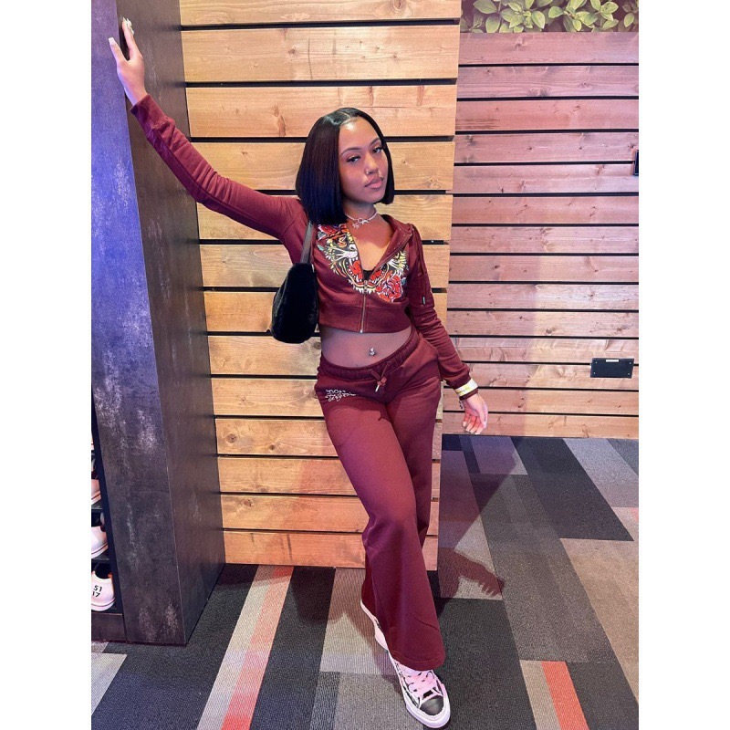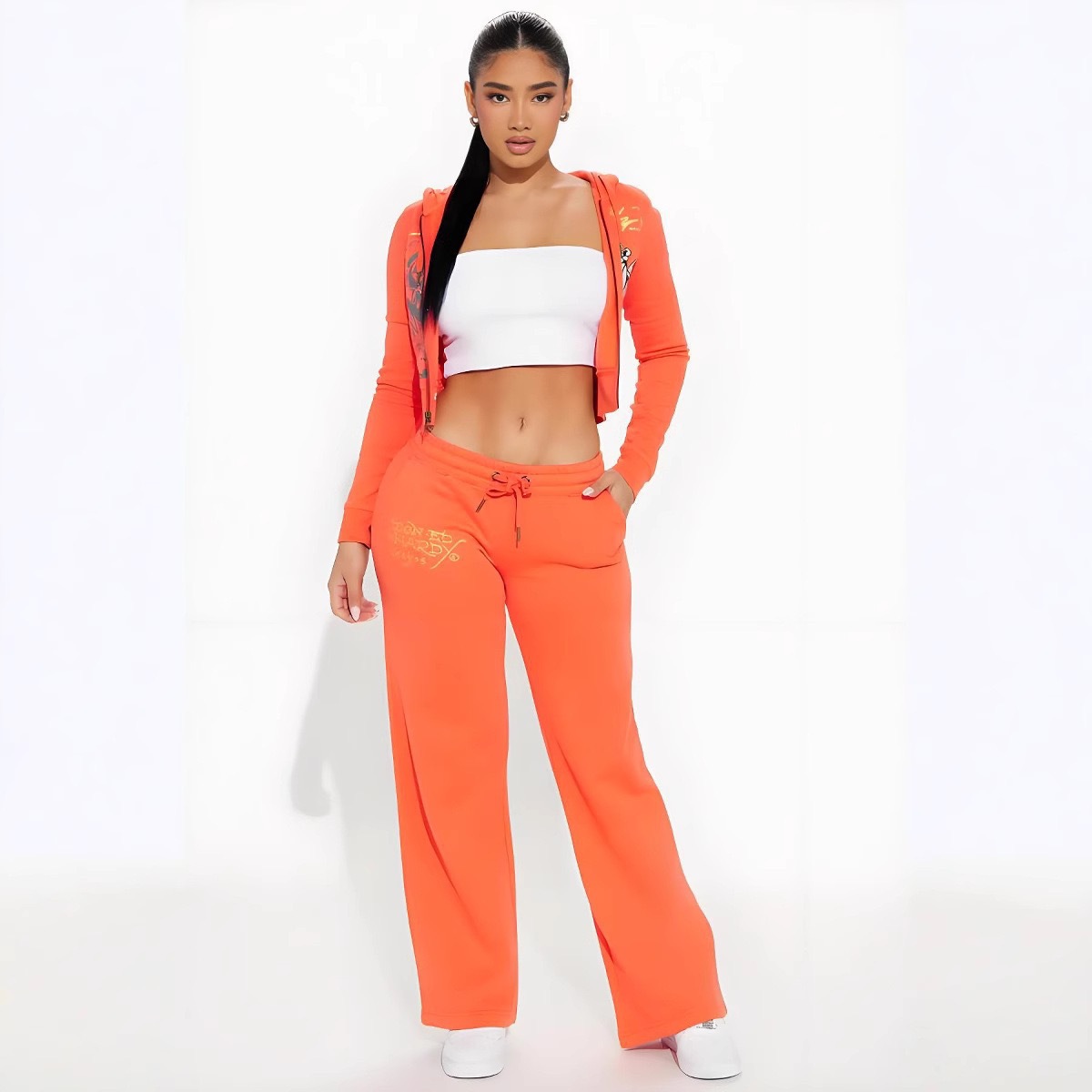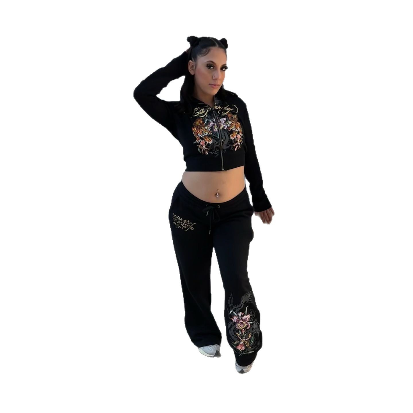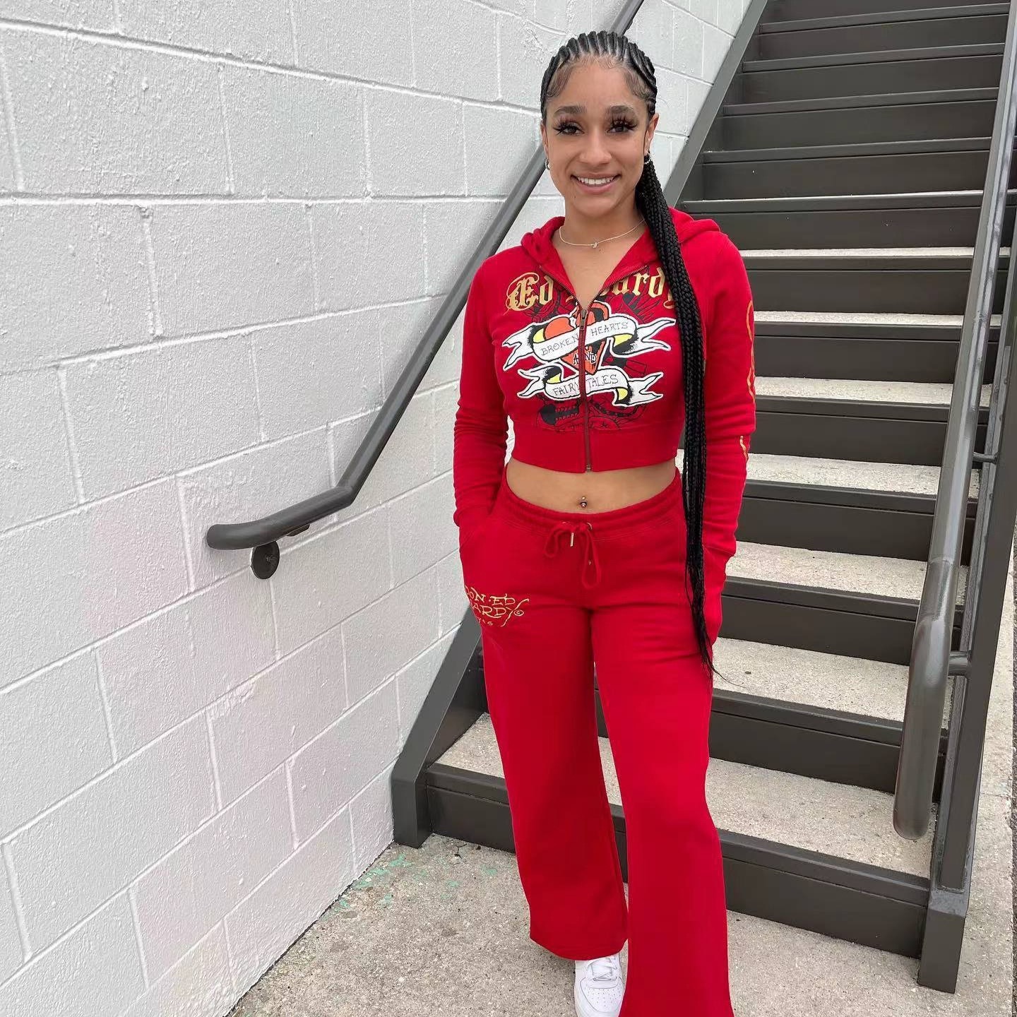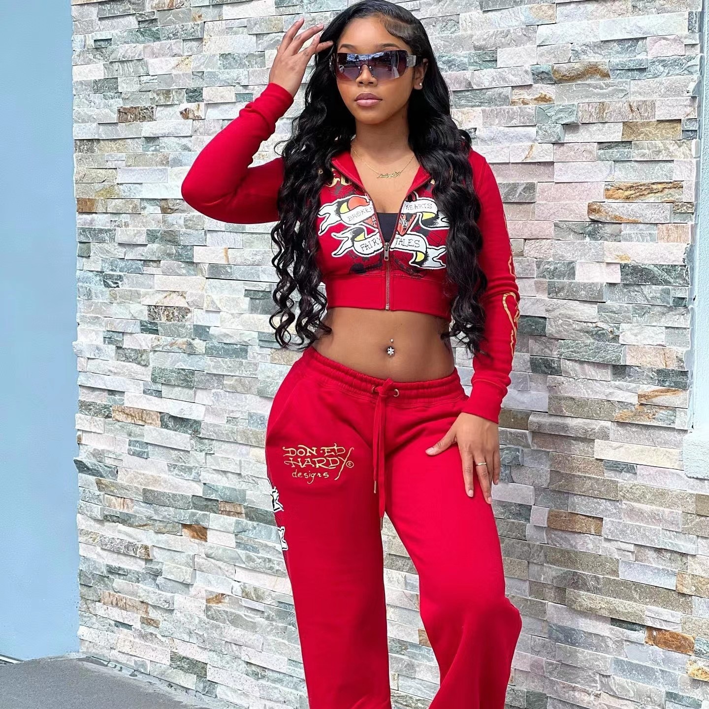 Главная страница > Европейский и американский модный уличный короткий кардиган с принтом черепа и сердца на молнии, женские прямые брюки с высокой талией из двух частей