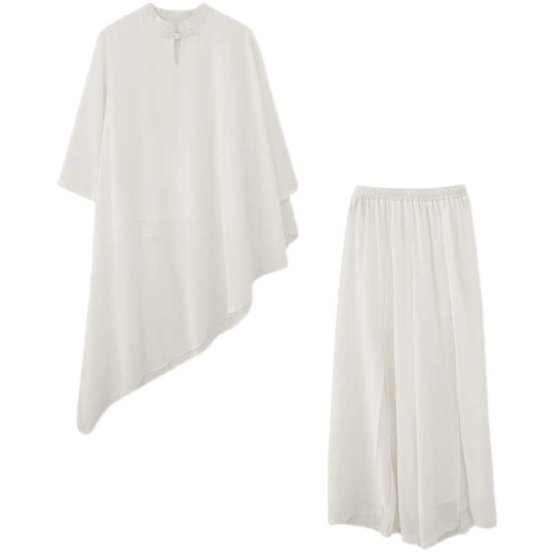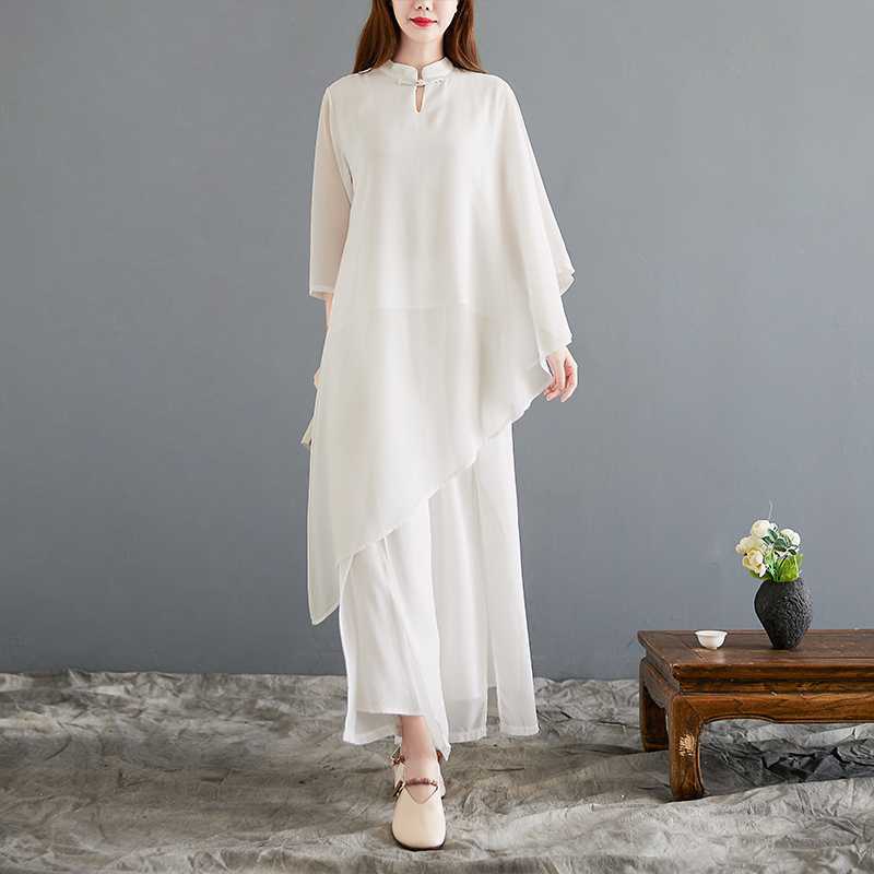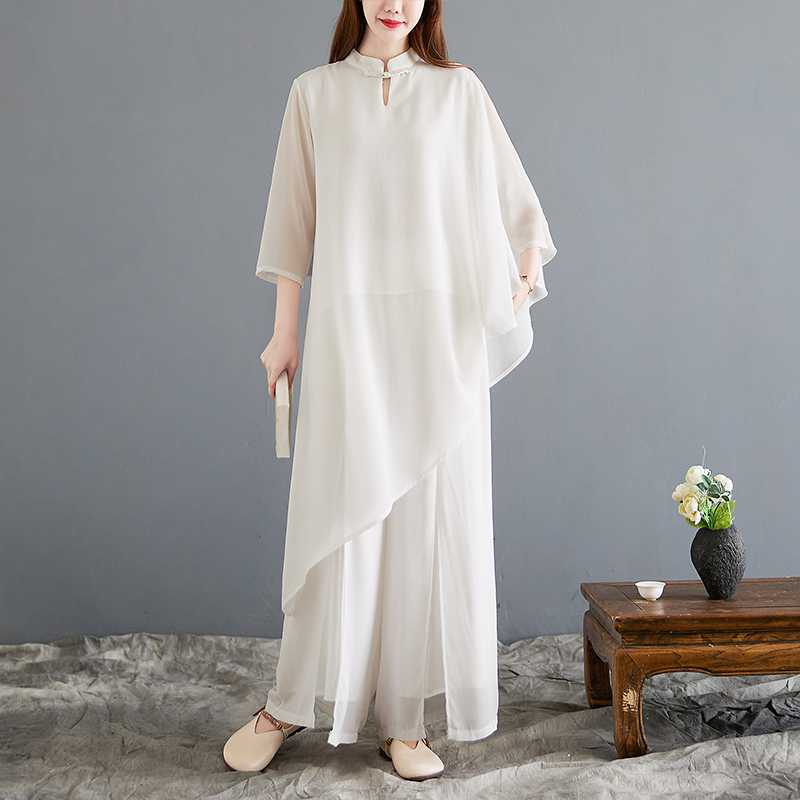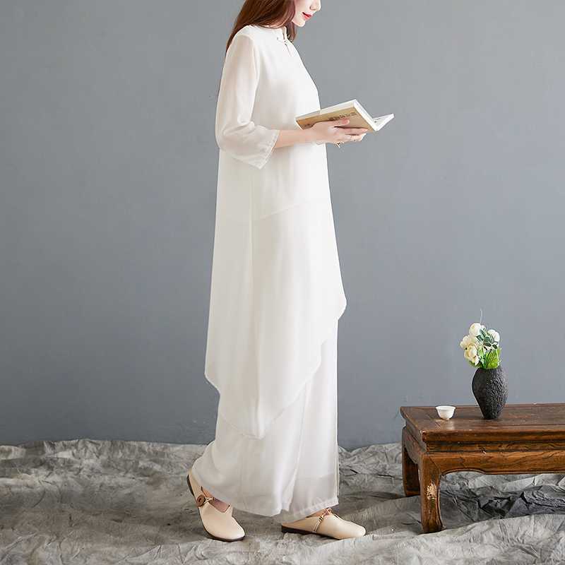 Главная страница > Настоящий снимок элегантной чая Zen, сказочный дух, новинка 2024, летняя женская одежда, белый шифоновый костюм в стиле шинуазри